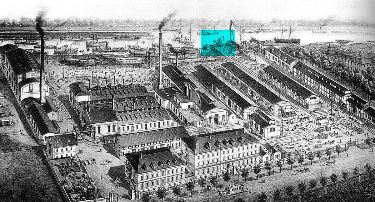 Das 1893 vom Leipziger Kunstverlag Eckert & Pflug herausgegebene unternehmenshistorische Sammelwerk „Großindustrie des Königreichs Sachsen in Wort und Bild“ stellt der Grafik aus dem Jahre 1893 die volkswirtschaftlich Bedeutung der Wasserstraßen voran und schreibt: „Eine jener Werkstätten, die in dieser Hinsicht Großes geleistet haben, […] ist die Dampfschiffs- und Maschinenbauanstalt der Österreichischen Nordwest-Dampfschiffahrt-Gesellschaft in Dresden.“