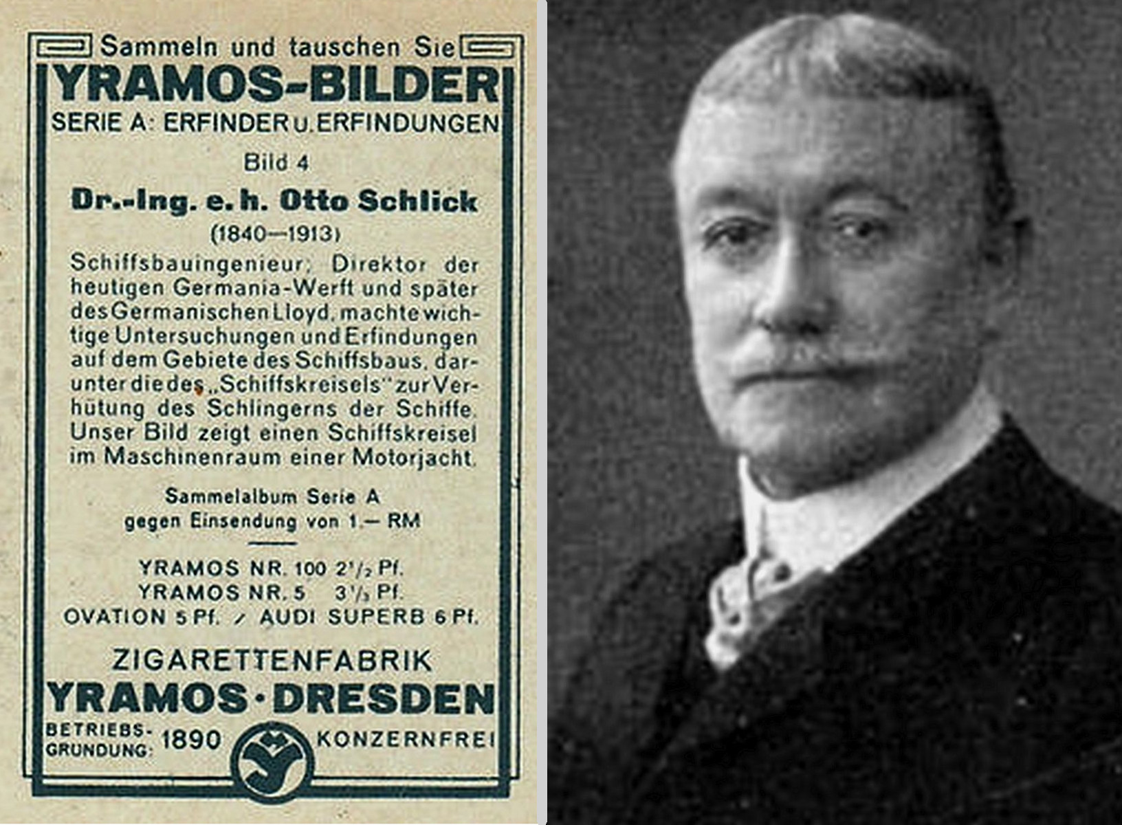 Ernst Otto Schlick, am 16. Juni 1840 als Sohn des Privatiers Benjamin Gotthold Schlick im sächsischen Grimma geboren, gehört zu den bedeutendsten deutschen Schiffbauingenieuren in Deutschland. Im Jahre 1855 verzog die Familie nach Dresden, wo drei Jahre später Ernst Otto Schlick ein „allgemeines maschinentechnisches Studium“ an der königlichen Polytechnischen Schule aufnahm und selbiges 1862 erfolgreich abschloss.