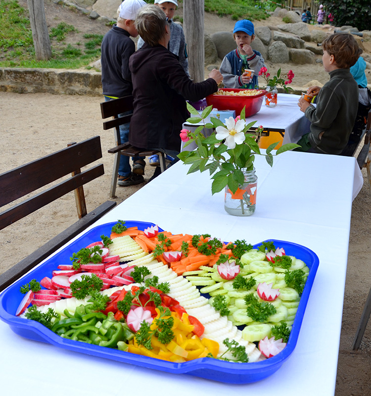 Um das Gesund-ernähren-Programm live kennenzulernen, bietet sich eine Gelegenheit am Dienstag, dem 7. Juni. Die „Kita Sternstraße“ in Mickten lädt Klein und Groß zu einer bunten Familienfeier. „Für unser diesjähriges Kita-Fest haben wir uns etwas ganz Besonderes einfallen lassen“, verrät Kita-Leiter Benno Hille. Beim Ernährungs- und Bewegungsparcours „5 Zwerge auf Tour“ können sich die Jungen und Mädchen sportlich betätigen und ihr Wissen über gesunde Ernährung testen. Für alle teilnehmenden Kinder gibt es eine Biotüte mit vielen Überraschungen. Die städtische Kindertagesstätte an der Sternstraße 32 beteiligt sich ebenfalls am Ernährungsprogramm und wird vom Rewe-Markt Maik Böttger unterstützt.