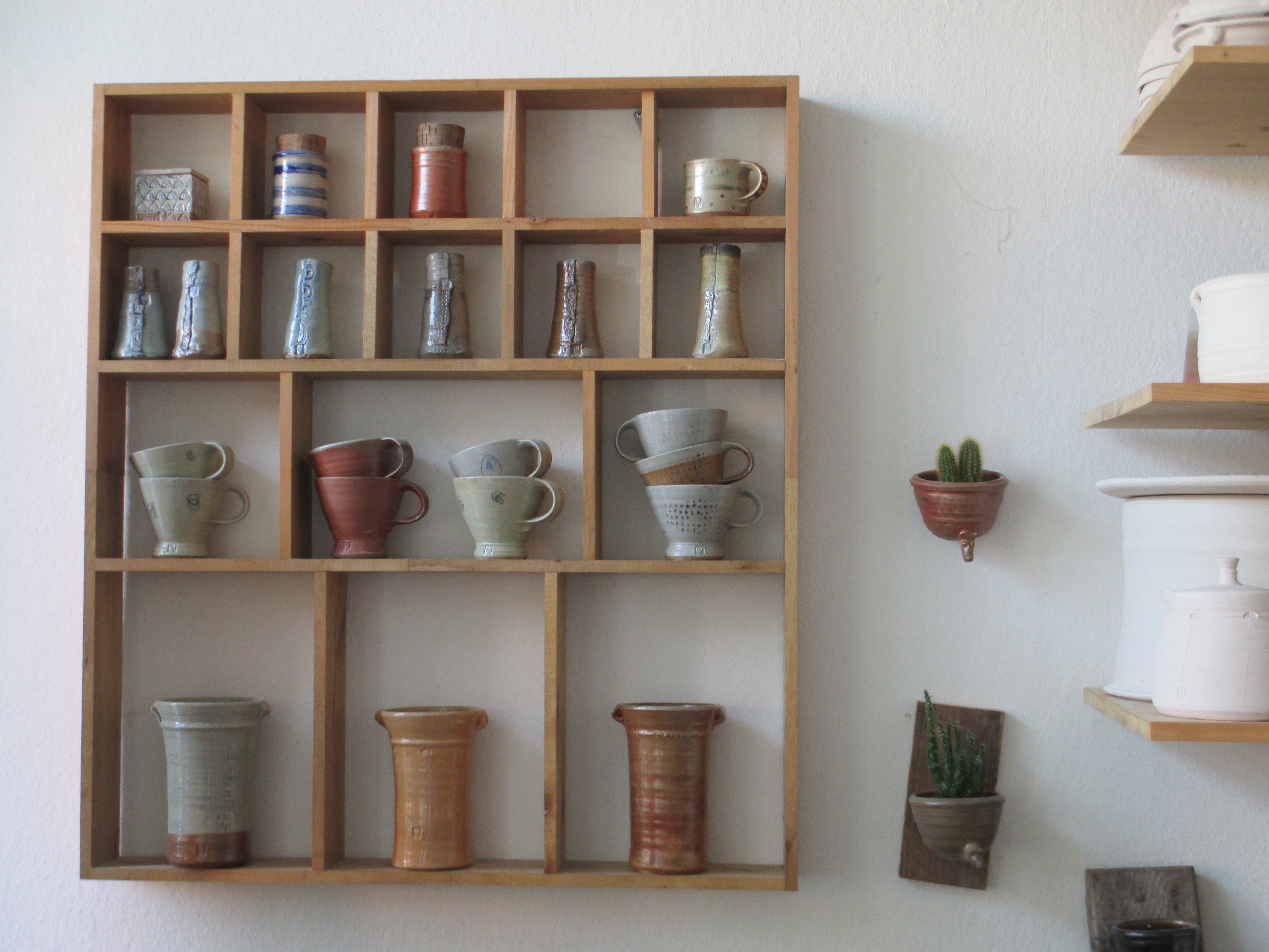Der Pfeil des Schicksals wies auf die Elbstadt, denn hier bekam sie die Zusage. „Hätte man mir gesagt, dass ich mal als Töpferin arbeite …“ sagt Elena und lacht. Sie lernte drei Jahre lang in der Kümmelschänke, die Töpferei mittlerweile nur noch in sehr kleinem Rahmen betreibt. 2010, nach ihrem Abschluss, hatte sie mit Susanne Engelhardt, die ihre Werkstatt ebenfalls auf der Gehestraße hat, ein Treffen. Es ging um die Betreuung eines Standes beim Dresdner Töpfermarkt. Als Elena anschließend die Straße entlang schlenderte, fiel ihr das leerstehende Geschäft in der Nummer 34 ins Auge. Sie schlug zu.