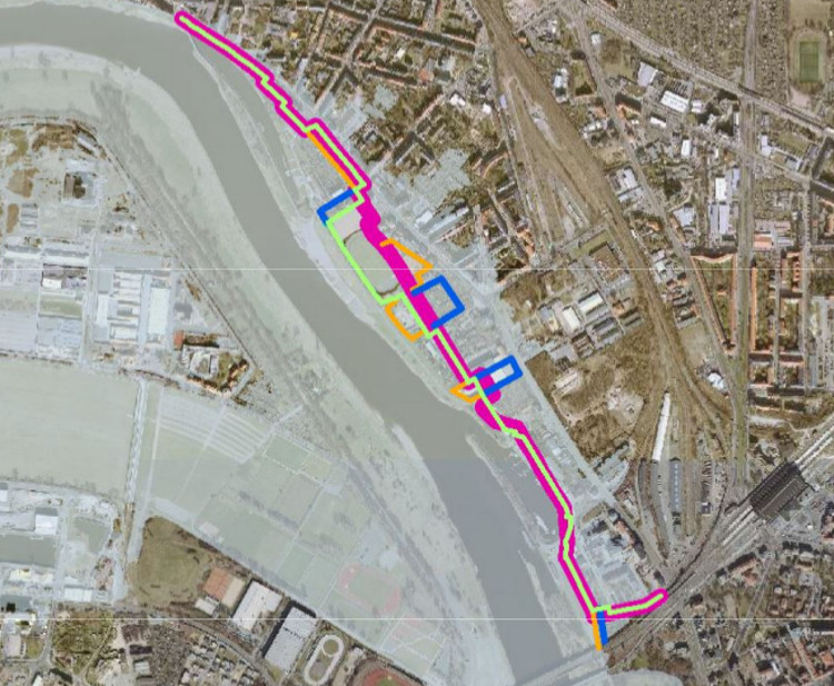 Die Hochwasserschutzlinie unterhalb der Leipziger Straße zeigt noch verschiedene Varianten. Quelle: Umweltamt Dresden