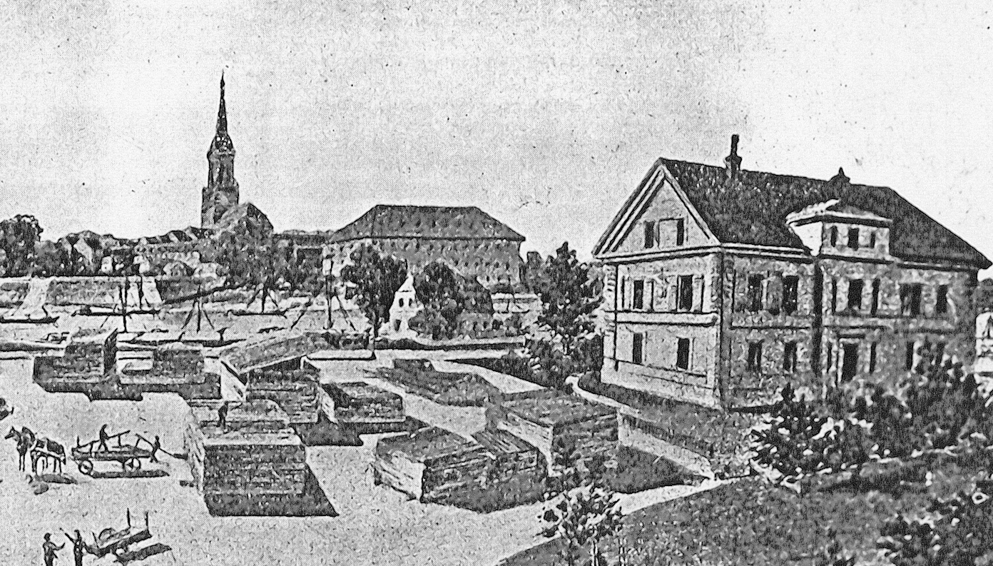 Auf dem Lagerplatz an der Schulgutstraße begann Grumbt mit dem Handel von Holz und Sandstein. Im Haus Nr. 6 wohnte die Familie. Quelle: Archiv Brendler