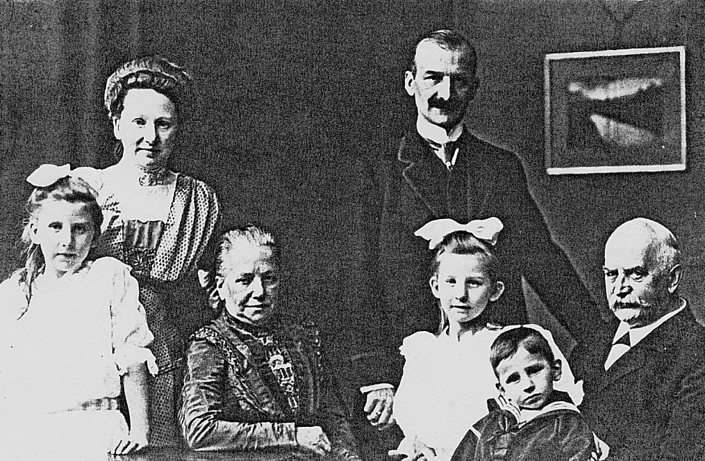 Familienfoto um 1910: Alfred und Elsa Grumbt (stehend), Ernst und Anna Grumbt sowie Enkelkinder (sitzend). Quelle: Archiv Brendler