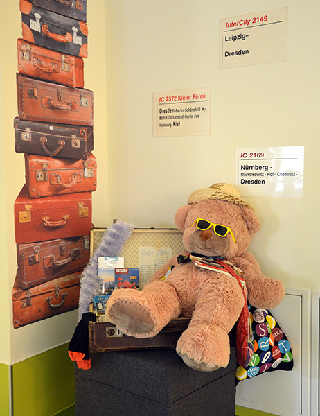 „Der Name soll einerseits zum Anhalten und Hereinkommen einladen und bezieht sich andererseits auf die historische Leipzig-Dresdner Eisenbahnstrecke, die seit 1839 unweit unserer Einrichtung verläuft“, erläutert Kerstin Rudolph, Regionalleiterin Sachsen von AlexA pro domo. Und schmunzelnd schiebt sie hinterher: „Unser Pflegedienstleiter Torsten Göbel ist nämlich ein Eisenbahnfreak und hat den Namen ausgesucht.“ Passend zum Zug-Thema sind die Fenster dekoriert, und innen begrüßt die Gäste ein Riesen-Teddy, der buchstäblich auf seinem gepackten Koffer sitzt.