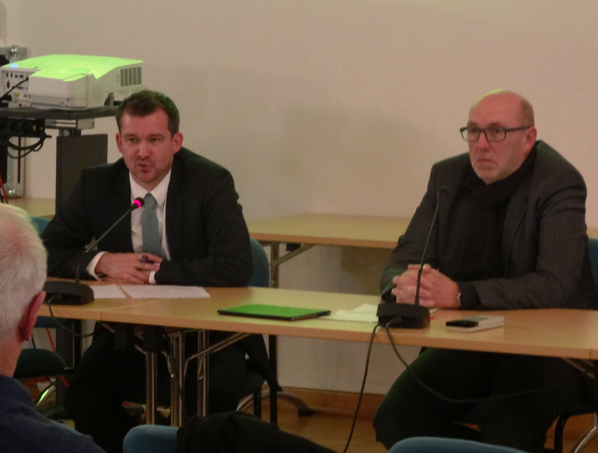 Baubürgermeister Raoul Schmidt-Lamontain und CDU-Stadtrat Veit Böhm diskutierten mit kanpp 25 Anwohnern. Foto: W. Schenk