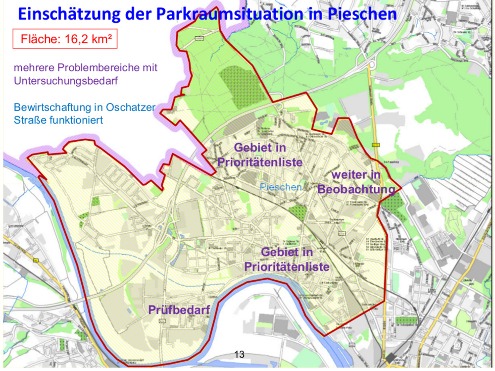 Parken: Prioritäten und Prüfbedarf im Ortsamtsbereich Pieschen. Grafik: dresden.de / Foto: W. Schenk