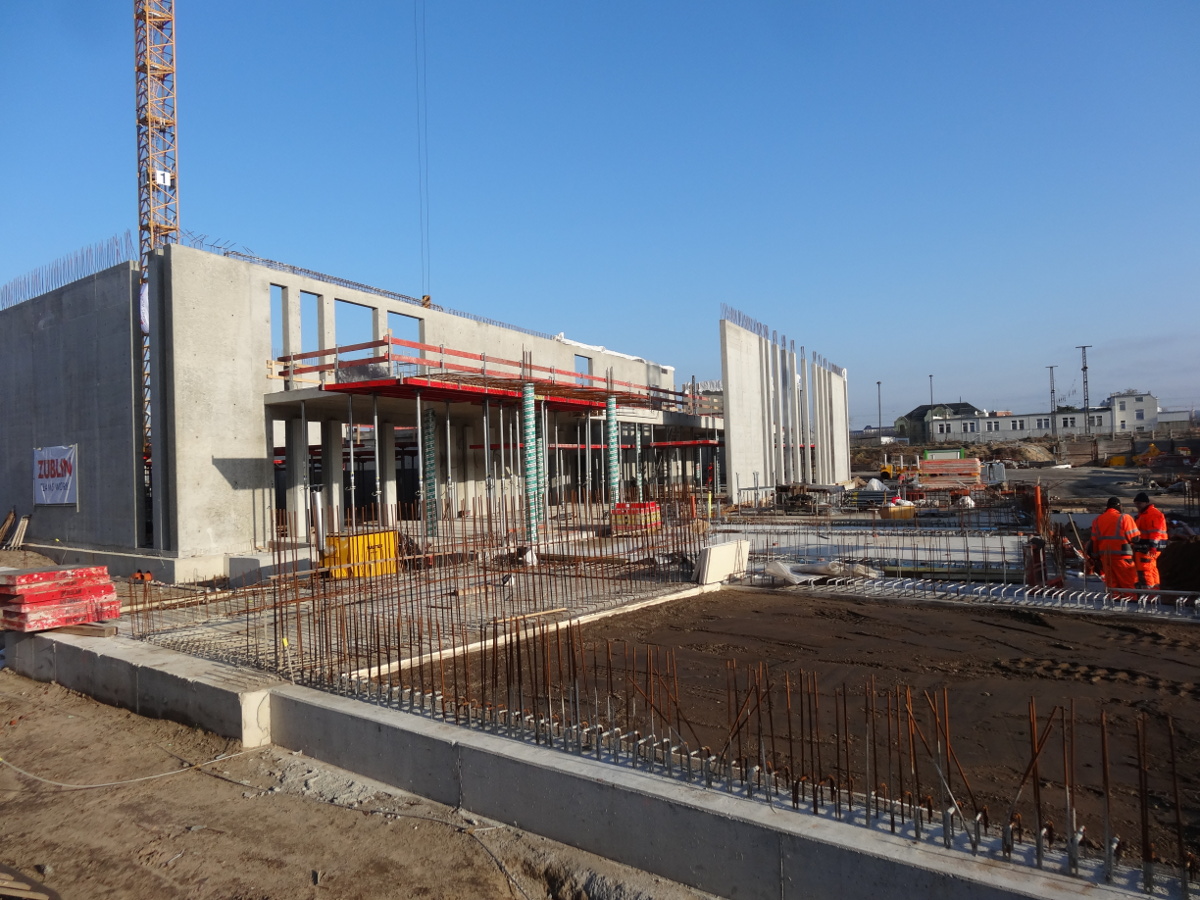 Die Seitenwände für Aula und Mensa stehen bereits. Foto: W. Schenk