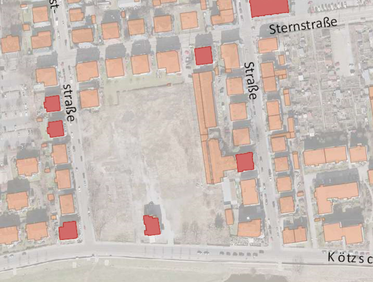 Auf der bereits bebauten Straßenseite im Abschnitt zwischen Sternstraße und Kötzschenbroder Straße sind laut Themenstadtplan drei der sieben Hauser als Kulturdenkmäler ausgewiesen. In dem Eckhaus an der Kötzschenbroder Straße befindet sich die „Micktner Weibswirtschaft“. Gleiches trifft auch auf die ehemalige Fabrikantenvilla in der Franz-Lehmann-Straße 5 und die Villa an der Kötzschenbroder Straße 26, heute eher bekannt als Medienvilla, zu. Diese Villa gehörte zum VEB Kofa Dresden und blieb Mitte der 90er Jahre als einziges Haus stehen, als die Produktionsgebäude der Konservenfabrik komplett abgerissen wurden. Mehrere Jahre war die Agentur Narciss & Taurus – davon zeugen noch heute die Schilder – Mieter in der Villa. Sie ist aber schon vor längerer Zeit an den Messering umgezogen. Die Villa gehört nicht zu dem Flurstück, für das laut Amtsblatt die Baugenehmigung erteilt wurde. Auf Anfrage erklärte eine Rathaussprecherin, dass gegen die Baugenehmigung ein Widerspruch vorliege. Über diesen, so hieß es, habe die Landesdirektion noch nicht entschieden.