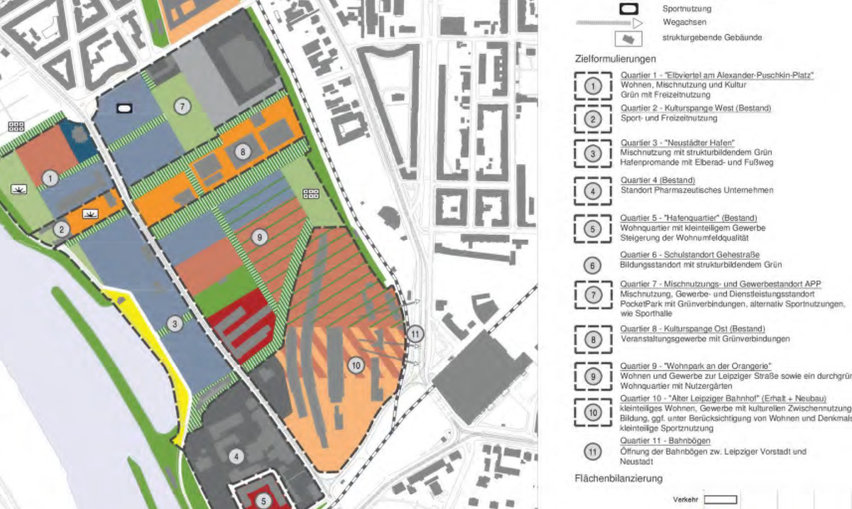 Der Stadtrat hat heute die Weichen für ein neues Stadtquartier in der Leipziger Vorstadt und am Neustädter Hafen gestellt. In den nächsten Jahren können hier mehr als 1.700 neue Wohnungen entstehen, ergänzt durch nichtstörendes Gewerbe und viel Grün. Die bereits vorhandenen Kultur- und Gewerbebetriebe bleiben erhalten.