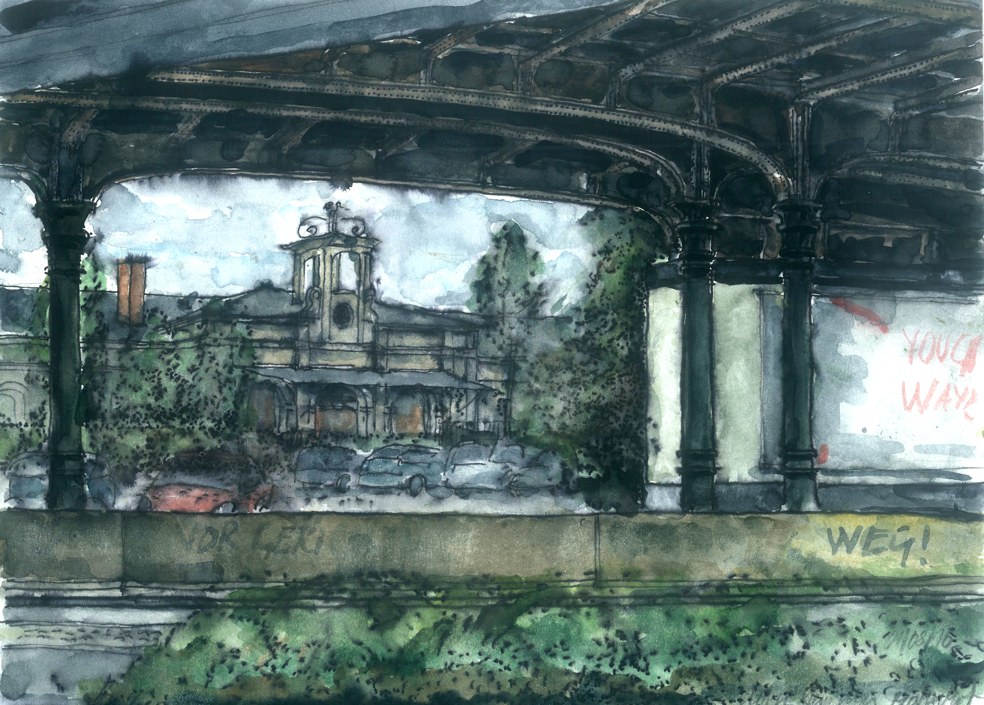 Fünf Jahre später malte Christian Helms das alte Empfangsgebäude noch einmal und wählte dafür eine andere Perspektive.