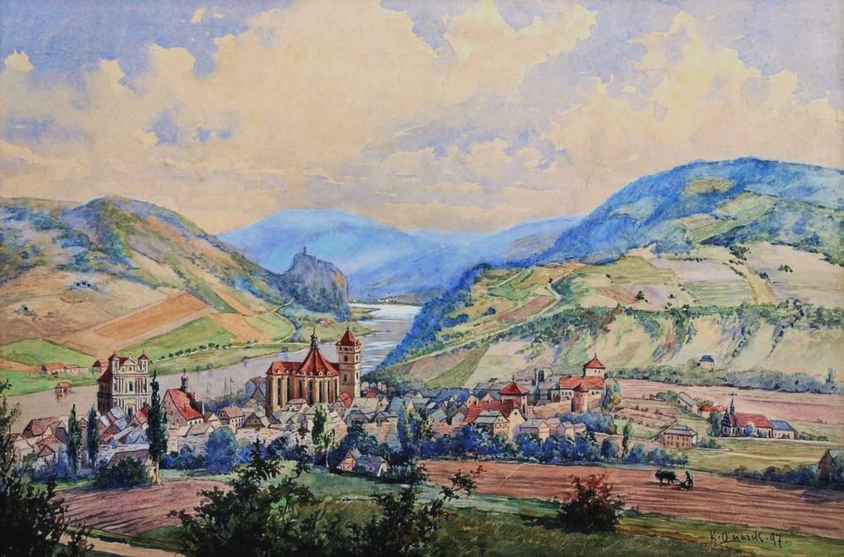 Es war ein Wandgemälde im Hause Wolfrum in Aussig (heute Ústí nad Labem). Die Villa hatte zu Beginn der 1890er Jahre Carl Friedrich Wolfrum (1842-1924), damals der führende Vertreter der Aussiger Fabrikbesitzer-Familie gleichen Namens, erbauen lassen. Auf der südlichen Seite der Eingangshalle ist der aus Kunstmarmor gefertigte Neorenaissancekamin erhalten. Darüber hängt ein Bild von Karl Quarck.