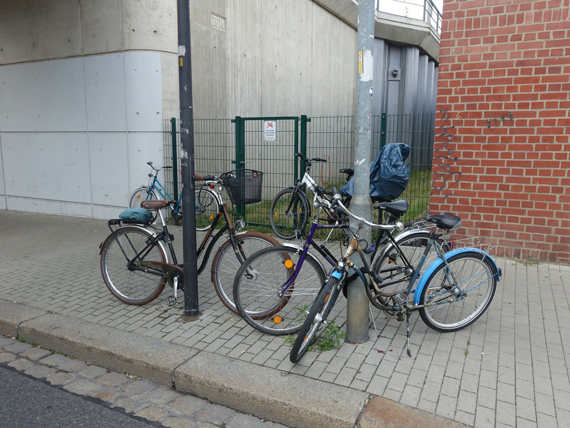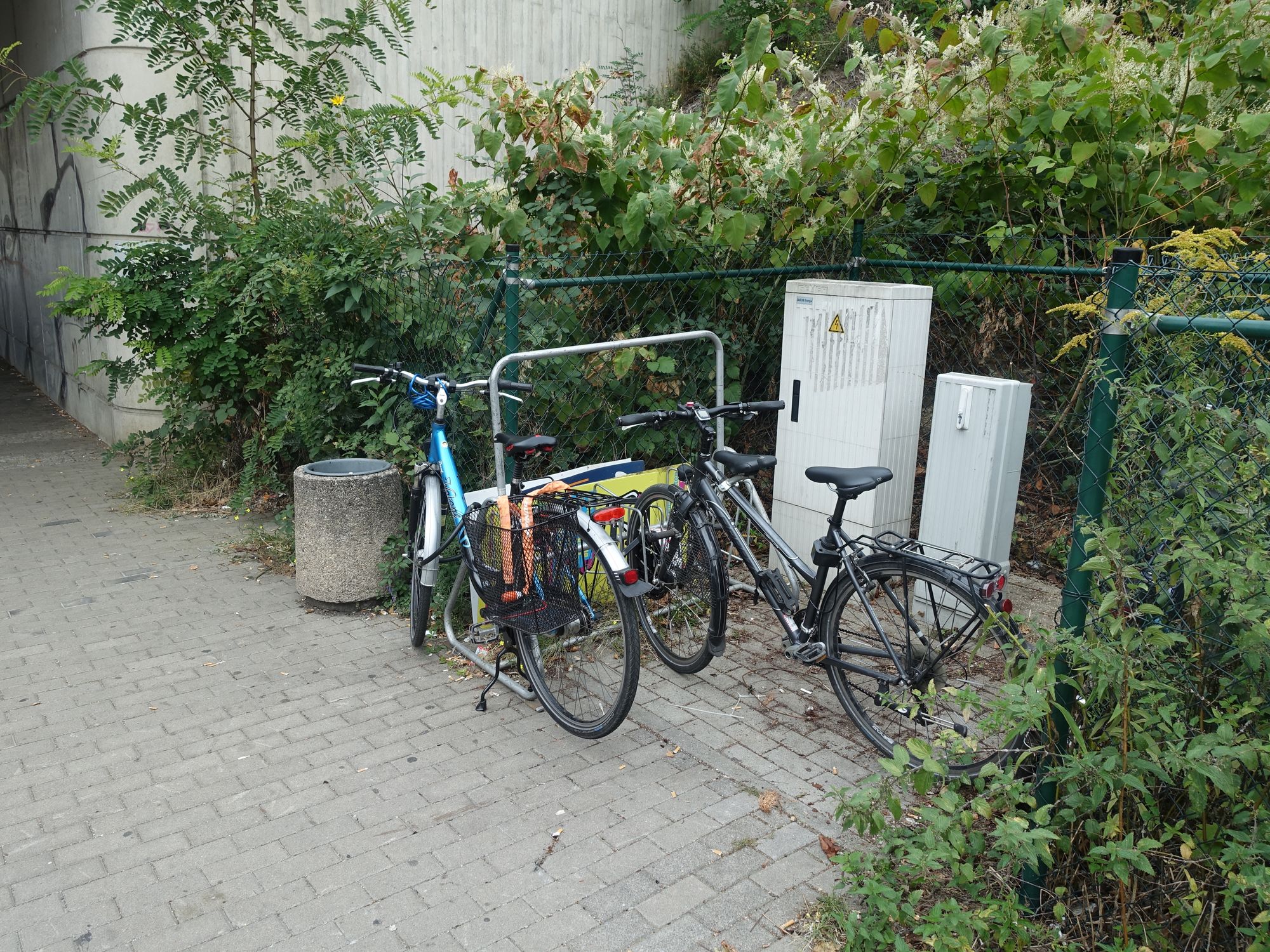 Abstellmöglichkeiten für Fahrräder sind rings um den Haltepunkt Trachau nicht zu finden. Claus Müller, Betreiber des Obst-und Gemüsehandels am ehemaligen Trachauer Bahnhof, hat einen alten Fahrradständer in eine kleine Bucht vor den Drewag-Kästen gestellt. „An meinem Zaun werden zum Glück nicht so viele Räder angeschlossen“, meint er. Gegenüber sei das schon anders.