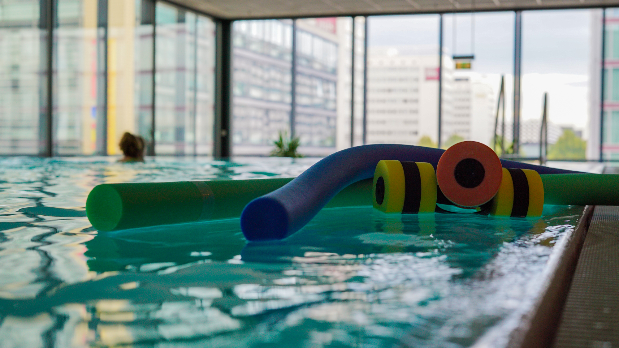 Zwei Jahre lang habe er dann andere Optionen für eine Schwimmschule recherchiert. Zeiten in den städtischen Schwimmhallen zu bekommen, sei aber nahezu unmöglich, sagt Olzmann. In Bühlau habe man ihm den Freitagmorgen von 6 bis 7 Uhr angeboten. Auch bei Hotels mit eigenen Pools sei er abgeblitzt. Bei Fitness First an der Prager Spitze, gegenüber vom Hauptbahnhof, ist er dann fündig geworden. Der Club hat einen 15 mal 5 Meter großen und 1,35 Meter tiefen Indoor Pool. Da ist genug Platz, um mit bis zu neun Kindern im Alter zwischen 5 und 8 Jahren zu üben. Im ersten Seepferdchen-Kurs seien sieben Kinder. „Wir starten nicht mit technischen Übungen sondern wollen den Kindern zunächst die Angst vor dem Wasser nehmen“, erklärt der Schwimmlehrer. Zum Beispiel, indem sie sich entlang der Poolwand hangeln. Bei einer Tiefe von 1,35 Metern reichen die Beine der Kleinen nicht auf den Grund. Das sei schon sehr anspruchsvoll.