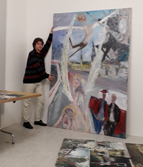 Während Johannes seit 2016 an der Hochschule für bildende Künste in Dresden studiert, hat Wolfgang nach der Zeit in Düsseldorf ein Diplomstudium der Elektrotechnik an der TU Dresden begonnen. Das sei bald geschafft, meint er. Dann wolle er noch einmal zur Malerei zurückkehren. Die Idee sei da, das Gesamtbild werde sich dann ergeben. So, wie die beiden auch an die Malerei herangehen.