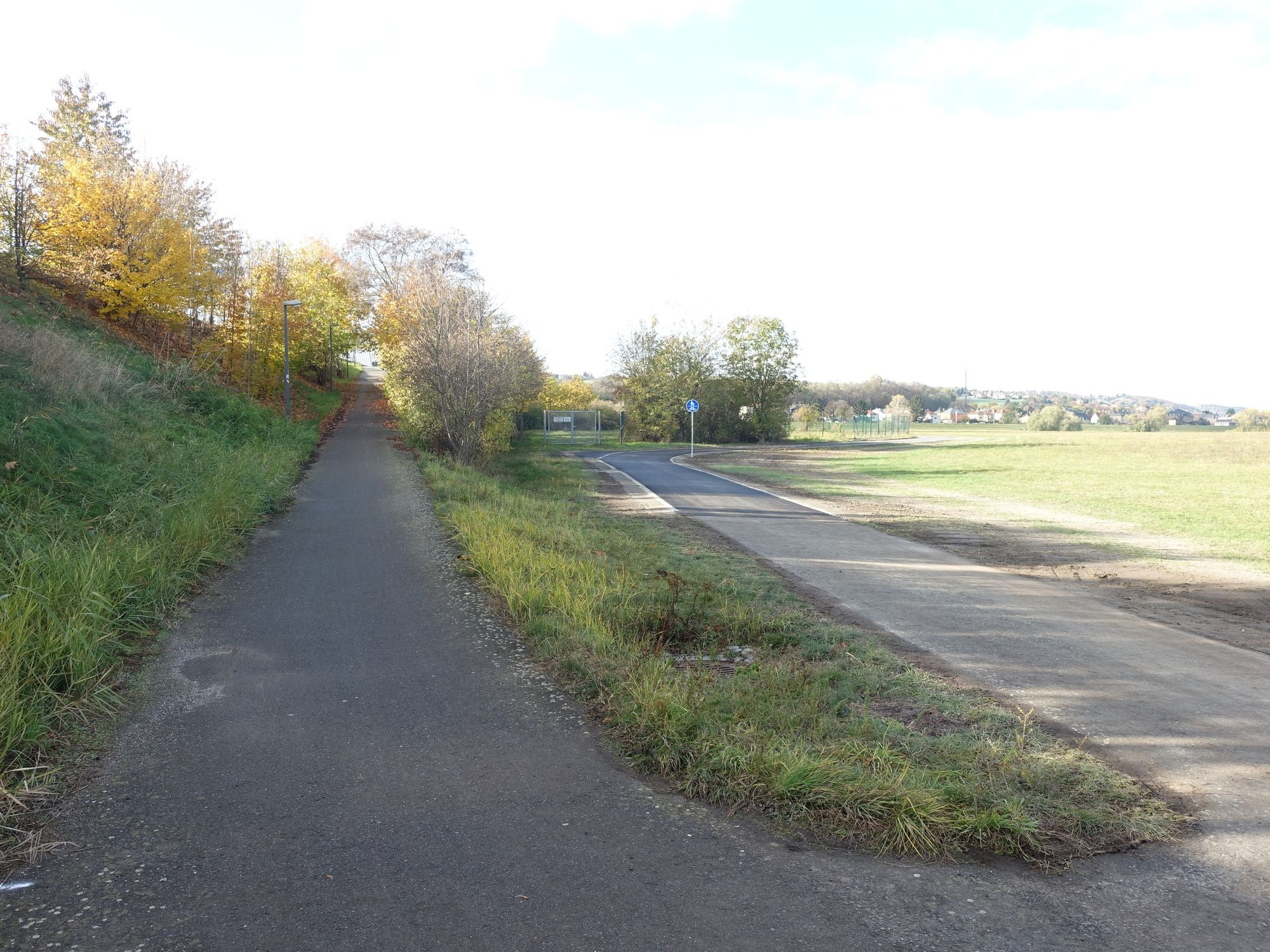 …was uns dann auch gleich zur Schotterpiste bringt – Was zum Henker rauchen die? Besser als nichts – klar, aber warum zum Henker reicht es ausgerechnet hier nicht für ein paar Meter Asphalt? Sonst ist versiegelte Fläche in Dresden doch auch nirgendwo ein Problem, solange man sich die Statistik per „wir haben viel Fläche in der Heide“ schönreden kann.