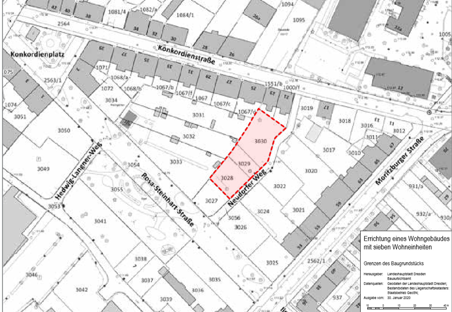 Die Baugenehmigung zeigt das Areal am Neudorfer Weg. Quelle: Dresdner Amtsblatt 5/2020