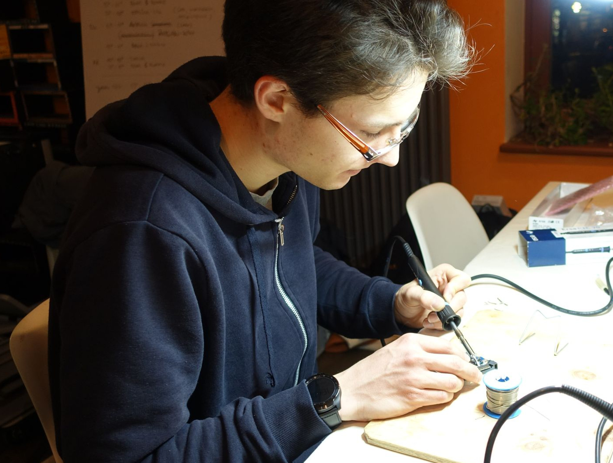 Von 18 bis 21 Uhr ist das Team vom Repaircafé donnerstags im Emmers. Anke kam gegen 19 Uhr und hatte ihre LED-Schreibtischlampe mitgebracht. „Ich habe extra etwas mehr Geld investiert und bei einem Onlineshop, der mit seiner Nachhaltigkeit wirbt, eingekauft“, ist sie etwas verärgert. Jakob, gelernter Servicetechniker, untersucht die vier Jahre alte Lampe. Ergebnis: „Einige Bauteile auf der Netzplatine konnten als schadhaft identifiziert werden – diese werden neu besorgt und später verbaut.“ Das könnte dann am 18. März der Fall sein, wenn das Team vom Repaircafé erneut ins Emmers kommt.