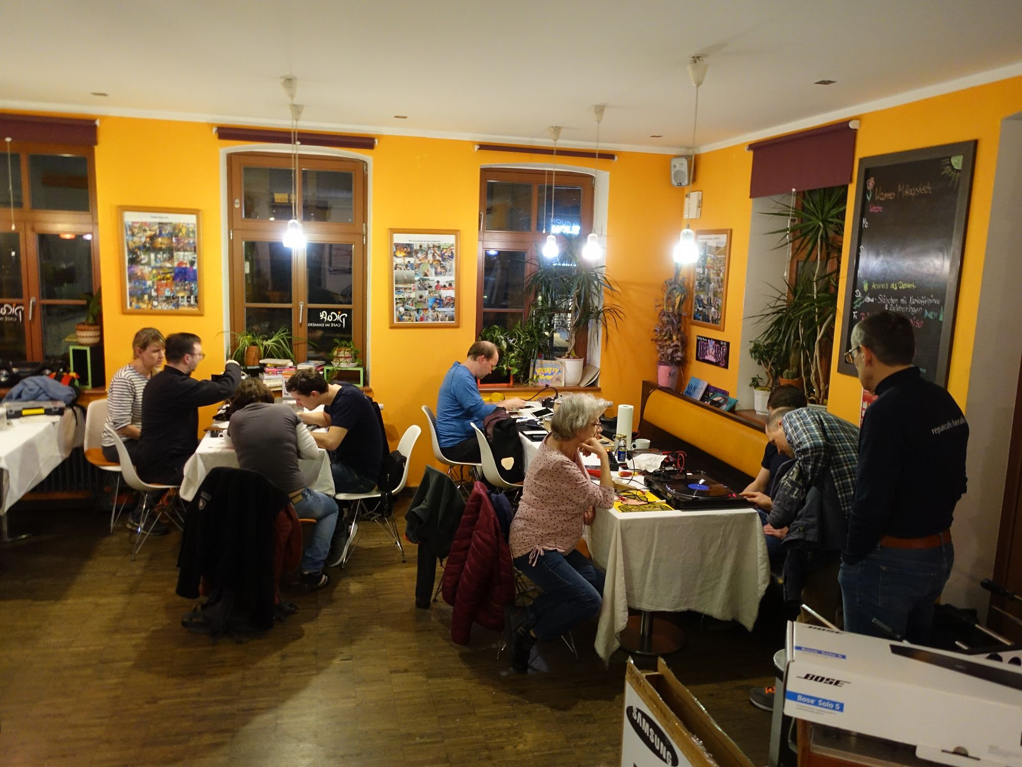 Zum Februartermin brachten die Besucher außer der Festplatte und dem Smartphone noch einen Plattenspieler, einen Kaffeeautomaten, eine Schreibtischlampe, einen Samsung-TV, einen Drucker, einen Smoothie-Maker und einen Bluetooth-Lautsprecher mit. Bei letzterem kam jede Hilfe zu spät – Totalschaden. Sonst verlief der Abend erfolgreich. Johannes zog später in seinem Repaircafé-Protokoll Bilanz und konstatierte: 12,3 Kilogramm Schrott vermieden. Gewissenhaft werden so die Reparatur-Abende an den sechs Standorten des Repaircafés – in Freital und fünf mal in Dresden – festgehalten.