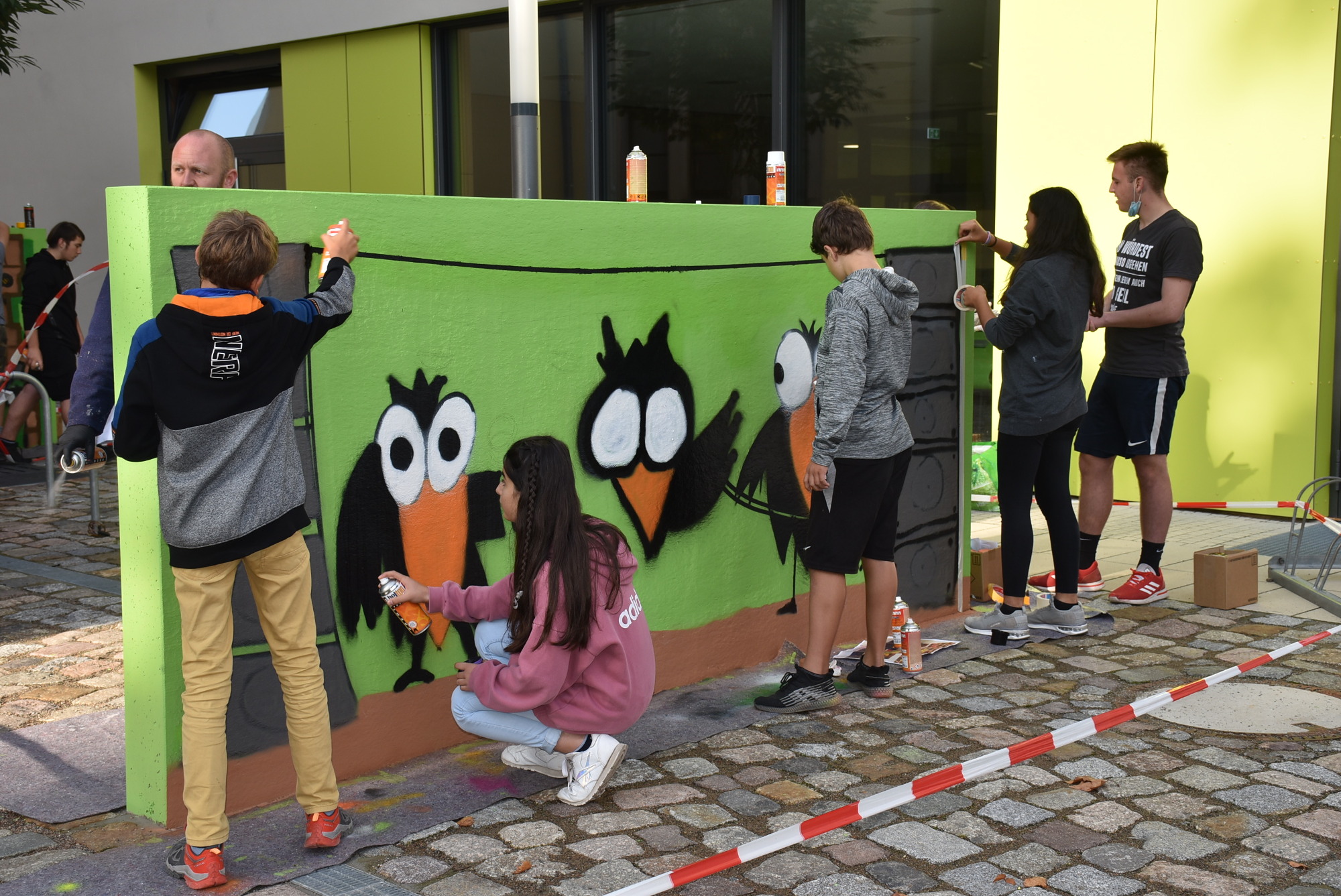 An der Makarenkoschule gestalteten Schülerinnen und Schüler der sechsten sowie achten bis zehnten Klasse zum Projektstart zwei Wände mit Graffiti. Diese waren im Zuge des Schulneubaus extra dafür vor der Cafeteria aufgestellt worden. Fachliche Unterstützung bekamen die Schülerinnen und Schüler in bewährter Weise von Christian Weiße von der Firma „Fassadengestaltung Dresden“. Seit nunmehr zehn Jahren arbeitet er fast jedes Jahr projektbezogen mit der Schule. In dieser Zeit sind schon mehrere Wandbilder mit Graffiti entstanden.