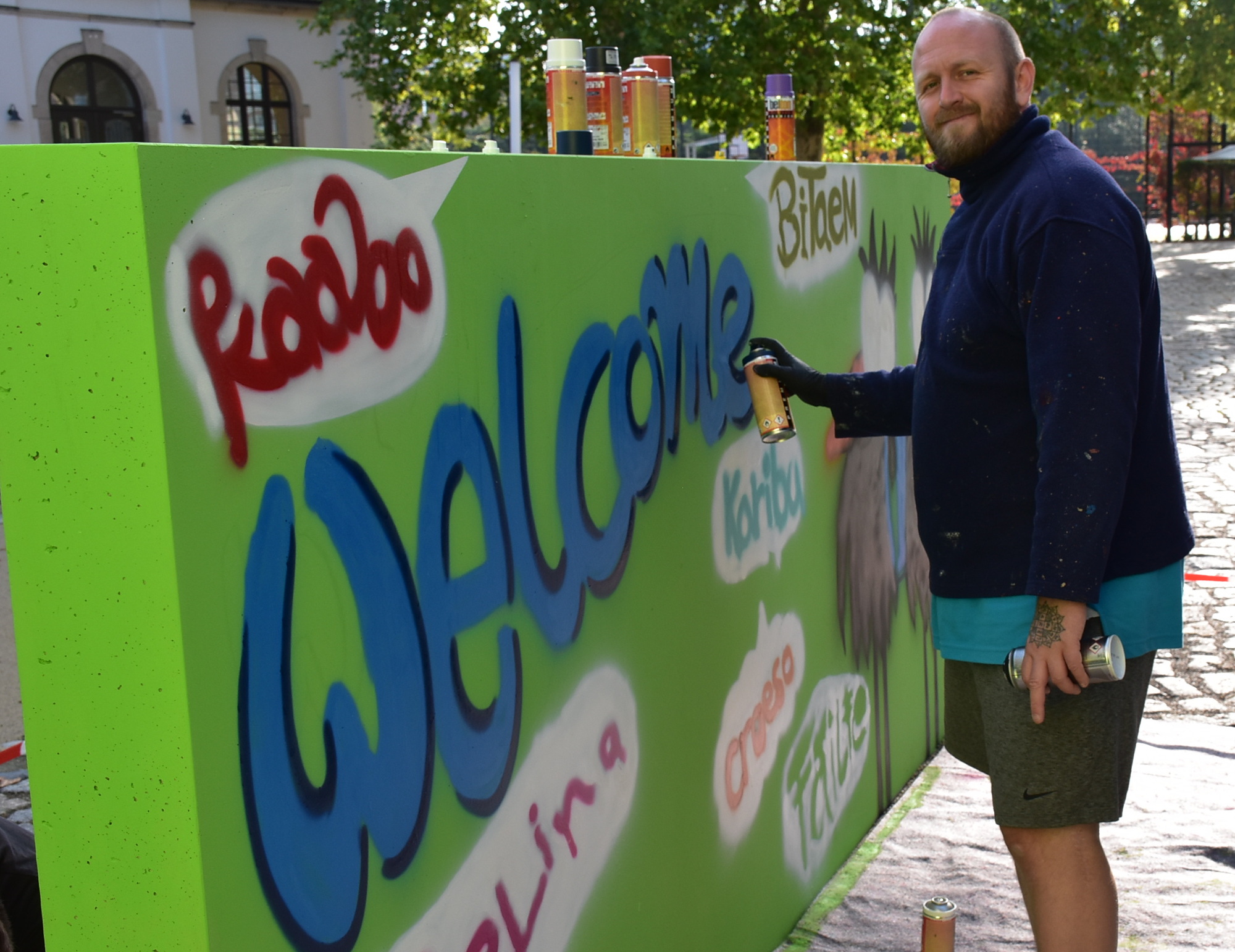 „Es ist toll, den Schülern das Graffitisprühen beizubringen. Noch ist es kein anerkannter Ausbildungsberuf“, sagt Christian Weiße. „Ich komme mit den jungen Leuten dabei gut ins Gespräch und kann auch darüber aufklären, wo es in Dresden legal möglich ist, Graffitis zu sprühen.“
