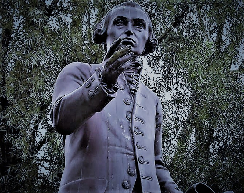 Immanuel Kant, als viertes von elf Kindern am 22. April 1724 in Königsberg geboren, gilt als einer der bedeutendsten Vertreter der abendländischen Philosophie. Im Jahre 1785 verfasste er seine grundlegende Schrift zur Ethik, die „Grundlegung zur Metaphysik der Sitten“. In ihr formulierte er als Kategorischen Imperativ: “Handle nur nach derjenigen Maxime, durch die du zugleich wollen kannst, daß sie ein allgemeines Gesetz werde.“ Am 12. Februar 1804 verstarb Kant, sein Grab befindet sich an der Außenseite des Doms in Kaliningrad. Das nach einem Entwurf des Bildhauers Christian Daniel Rauch (1777-1857) geschaffene Kant-Denkmal wurde am 18. Oktober 1864 in Königsberg enthüllt. Gegen Ende des Zweiten Weltkriegs auf dem nahe von Königsberg gelegenem Gut der Familie Dönhoff in Sicherheit gebracht, konnte es nach Kriegsende nicht mehr aufgefunden werden.