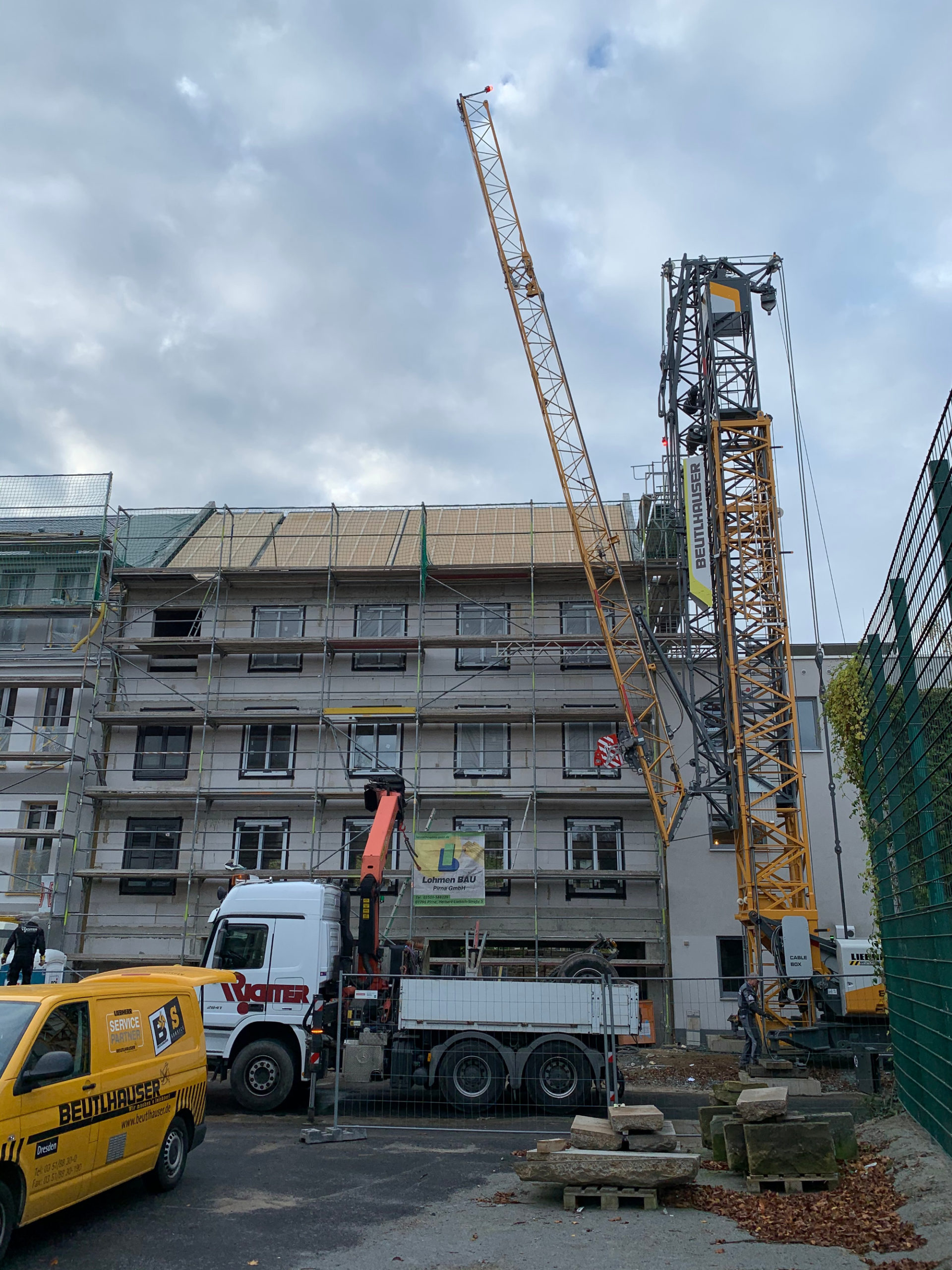 Es hätte alles viel schlimmer kommen können. Selbst eine Verschiebung des Baubeginns bis ins Jahr 2022 hat zwischendurch gedroht. Jetzt stehen René Hempel und Christoph Lämmel vor ihrem künftigen Wohnhaus in der Konkordienstraße 15. „Unser Richtfest ist leider Corona zum Opfer gefallen. Wir haben uns mit einem kleinen Essen bei den Bauarbeitern bedankt“, sagt Christoph Lämmel. Weil nicht gefeiert werden konnte, habe man auch auf das Richtkronen-Ritual verzichtet. Jetzt steht der Rohbau. Darum konnte am 14. November auch der Kran abgebaut werden, der zum Teil auf der Straße stand.