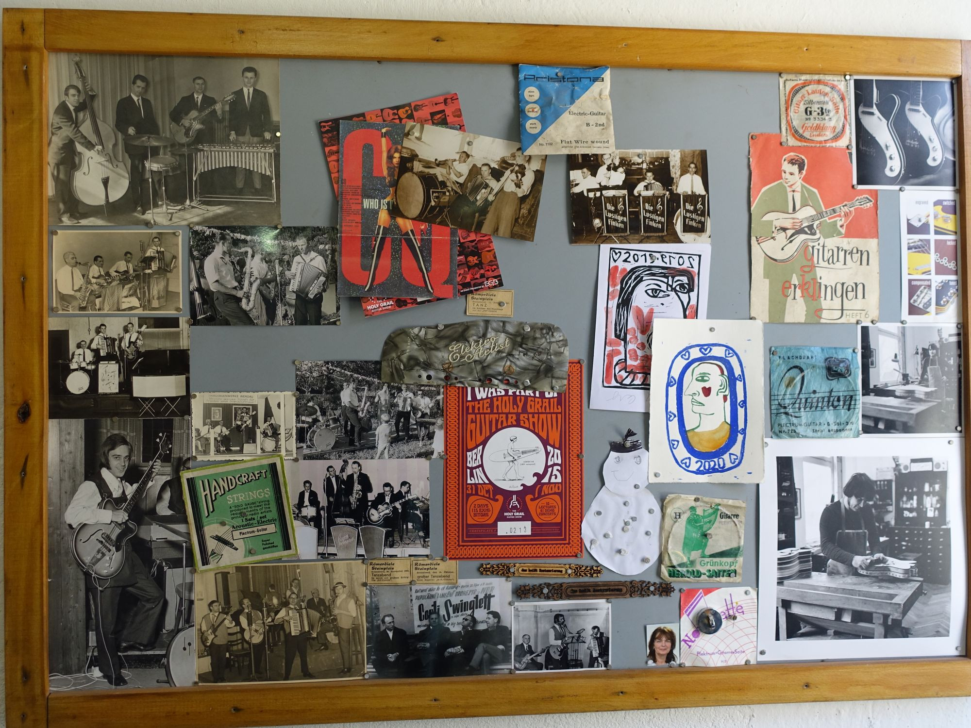 Einen besonderen Bezug hat der Gitarrenbauer zu den Instrumenten mit DDR-Geschichte. Über dem Sofa hängen alte Fotos von Ost-Bands. Zu jeder Gitarre, die da zu sehen ist, kann er Geschichten erzählen. Eines der Exemplare hängt auch in dem Wandschrank. Er sei immer froh, wenn sich jemand mit einem alten Instrument meldet. Viel zu viel lande auf dem Wertstoffhof, sagt der Gitarrenbauer mit dem restauratorischen Blick und dem umfangreichen Expertenwissen zum DDR-Gitarrenbau.