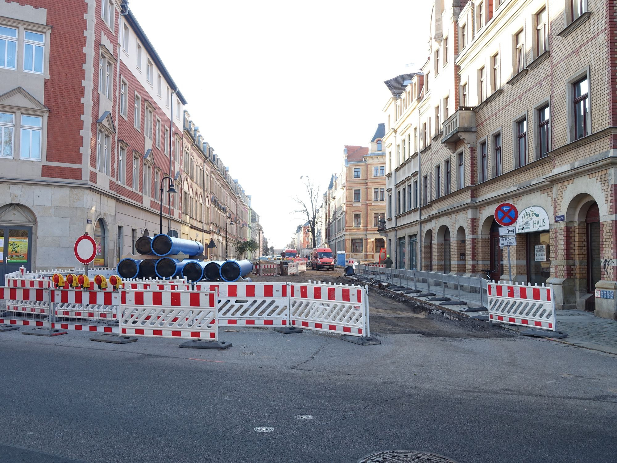 Während viele Baustellen inzwischen fertiggestellt sind, ist die Torgauer Straße zwischen Mohnstraße und Leisniger Straße noch gesperrt. Hier würden jetzt Drewag und das Dresdner Straßen- und Tiefbauamt gemeinsam bauen, hatte Projektsteuerer Steffen Kadler vom Büro ICL Ingenieur Consult am vergangenen Dienstag auf der Sitzung des Stadtbezirksbeirates erklärt. Nach Verlegung von Fernwärmerohren und den neuen Brauchwasserrohren mit einem Durchmesser von 60 Zentimetern würde sich unmittelbar die Erneuerung der Straße durch die Stadt anschließen. Baustellen werde es auch weiterhin geben. Allerdings seien die Einschränkungen beim Bau von weiteren 60 Hausanschlüssen nicht so gravierend wie bisher.