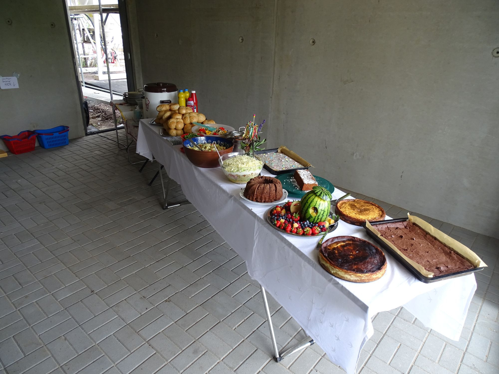 Selbst gemacht: Das Buffet für das Richtfest und der gepflasterte Boden in der künftigen Werkstatt. Foto: W. Schenk