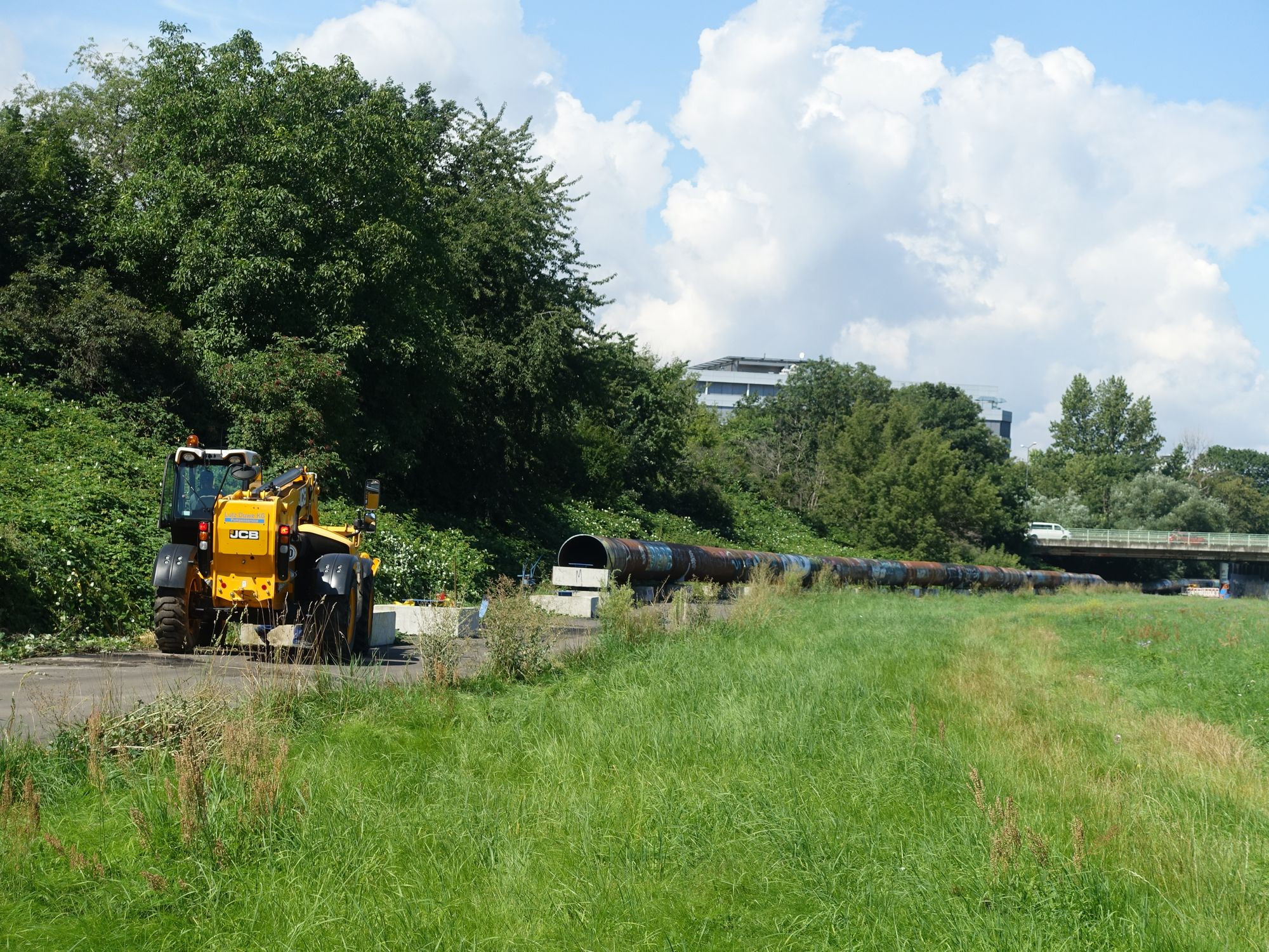 Die Rohre für die Umleitung, seit Ende Juli fließt hier kein Abwasser mehr durch, werden jetzt auseinandergeschweißt und abtransportiert. Auch die provisorische Asphaltstraße wird vollständig zurück gebaut, betonte Heiko Nytsch, Projektleiter für die Sanierung des Neustädter Abfangkanals. Bis Ende des Jahres soll hier wieder alles grün sein. Dann ist auch für ihn das Projekt erfolgreich abgeschlossen.