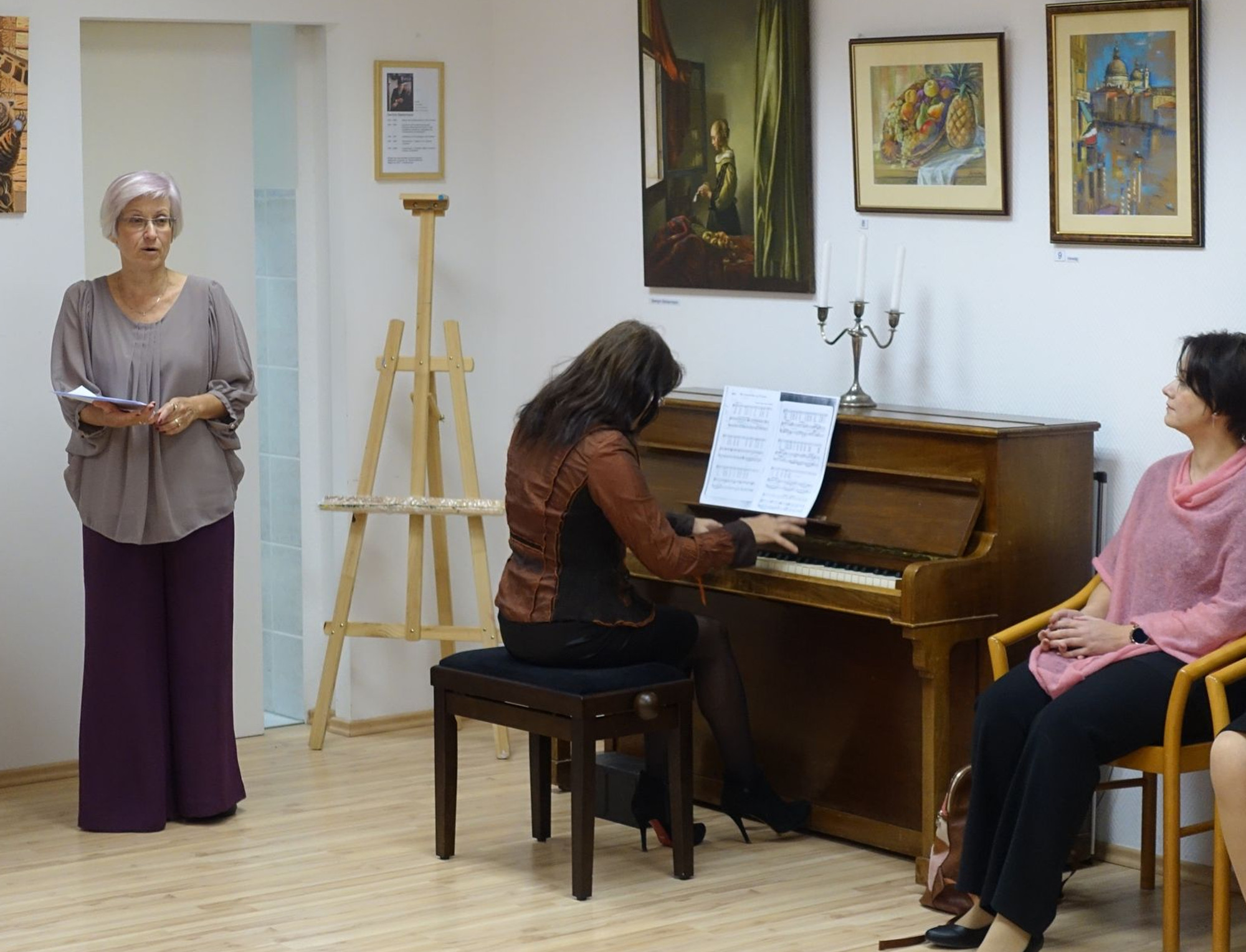 Obwohl etwa 90 oder mehr Prozent der Besucherinnen und Besucher zur Ausstellungseröffnung die russische Sprache beherrschten, wurde deutsch gesprochen oder, wenn ein Redner sich lieber auf russisch ausdrücken wollte, übersetzt. Das machte Moderatorin Lilly Regir perfekt. Sie war kurzfristig für die erkrankte Vereinschefin Irina Schilling eingesprungen. „Ich sehe hier viele unbekannte Gesichter“, stellte sie zur Begrüßung fest. Darum verwies sie in wenigen Worten auf die inzwischen 28-jährige Geschichte des Vereins.