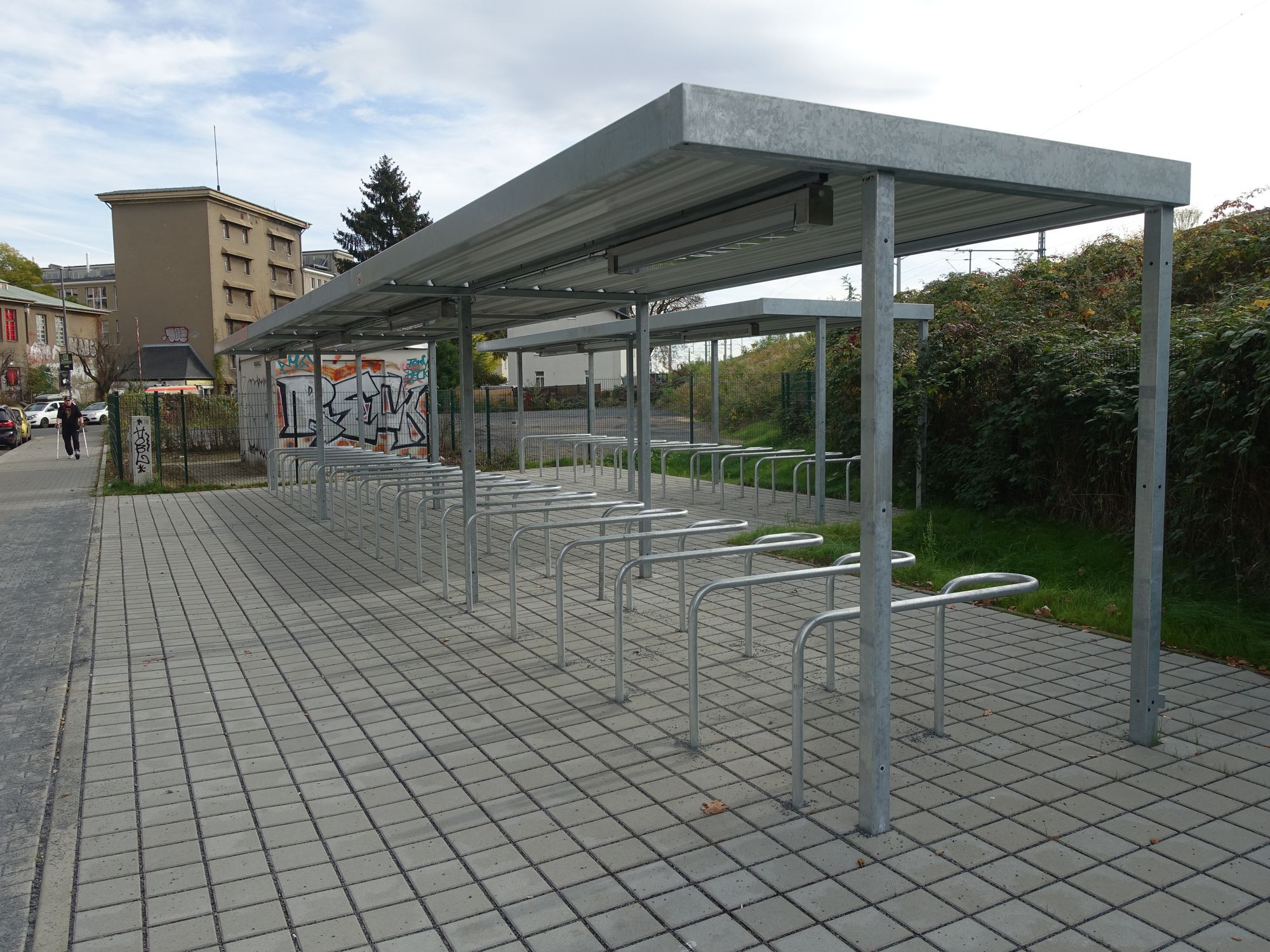 Absolut überdimensioniert, ich laufe in Trachau täglich mehrmals daran vorbei. Wetten, mehr als 10 Fahrräder werden es nie. Vorher war dort ein Garten, jetzt ist dort Beton. Auch die Beleuchtung ist überflüssig. In Trachau hätte die eh vorhandene Straßenbeleuchtung dicke gereicht.
