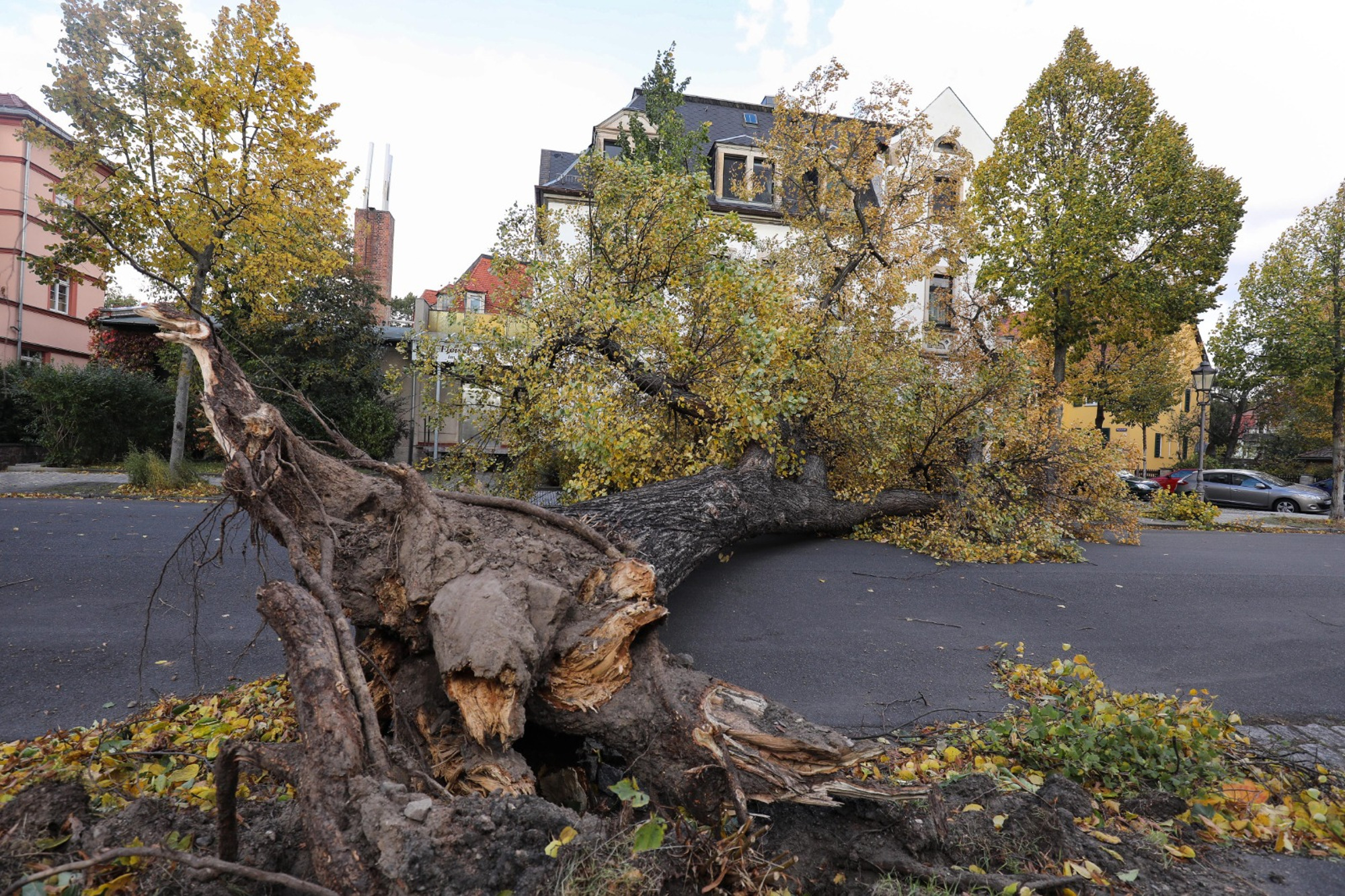 Baum fällt in Hubertusstraße auf Auto – umgestürzter Baum in Kopernikusstraße