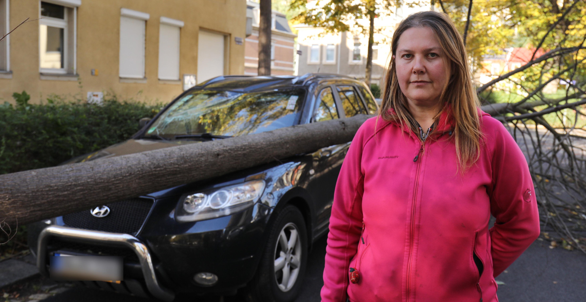 Auf der Kreuzung Hubertusstraße / Döbelner Straße stürzte ein Baum auf ein Auto. Unser Reporter traf die Besitzerin Sandra Schöne vor Ort, als sie gerade dabei war, einen Zettel an ihrem zerbeulten Hyundai Santa Fe zu befestigen: „Feuerwehr ist informiert“. Sie habe nach zwei Versuchen die Feuerwehr erreicht. Aber bis sie kommt, könne noch einige Zeit vergehen. Darum erst einmal der Zettel, damit nicht noch mehr Leute den Notruf wählen. Sandra Schöne war sauer und schilderte auch, warum. „Die Stadt wusste, dass hier ein abgestorbener Baum steht. Es war der einzige in der Straße, der keine Blätter trägt. Das musste doch auffallen“, meinte sie. Ob die Stadt nun für den Schaden aufkommt, werde sich erst noch klären.
