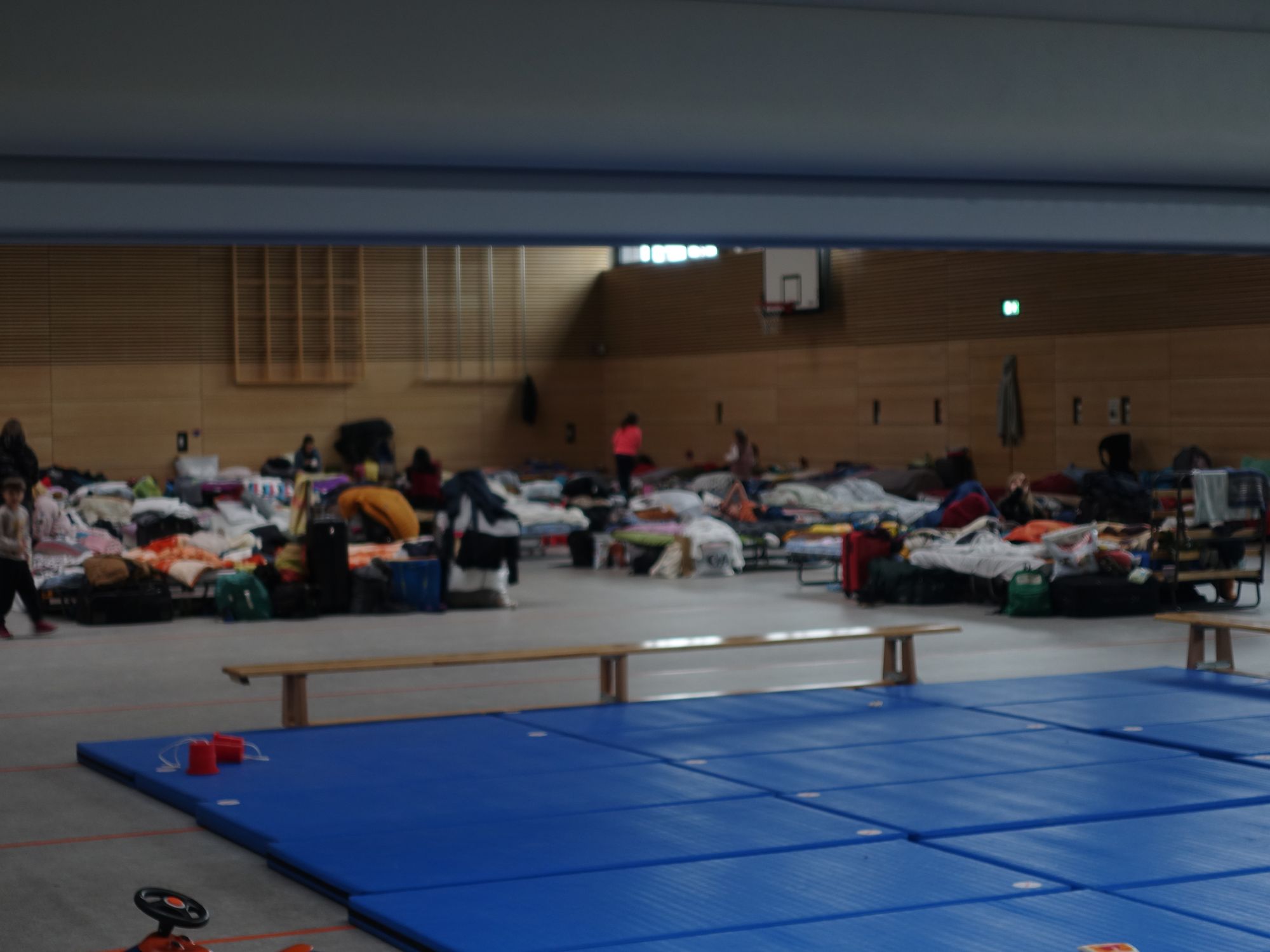 Olga ist Architektin, Sergej ist Doktor der technischen Wissenschaften und hat mehrere Jahre an der Technischen Universität unterrichtet. Weil das Geld für die fünfköpfige Familie knapp wurde, hat er sich selbständig gemacht und Firmen in der Ukraine und in Moldawien beraten. Das war ihr Leben vor dem Krieg. Dann haben sie gesehen, wie der militärische Teil des Flughafens in Dnipro mit Raketen beschossen wurde, am Stadtrand eine Fabrik in Flammen aufging und ein Hochhaus in der Stadt unter Beschuss geriet. Seit dem sind sie auf der Flucht. Mit dem Smartphone und dem freien Wlan in der Sporthalle halten sie Kontakt nach Hause. Für sie gibt es keinen Zweifel daran, dass sie dorthin – in ihr gewohntes Leben – wieder zurück wollen.