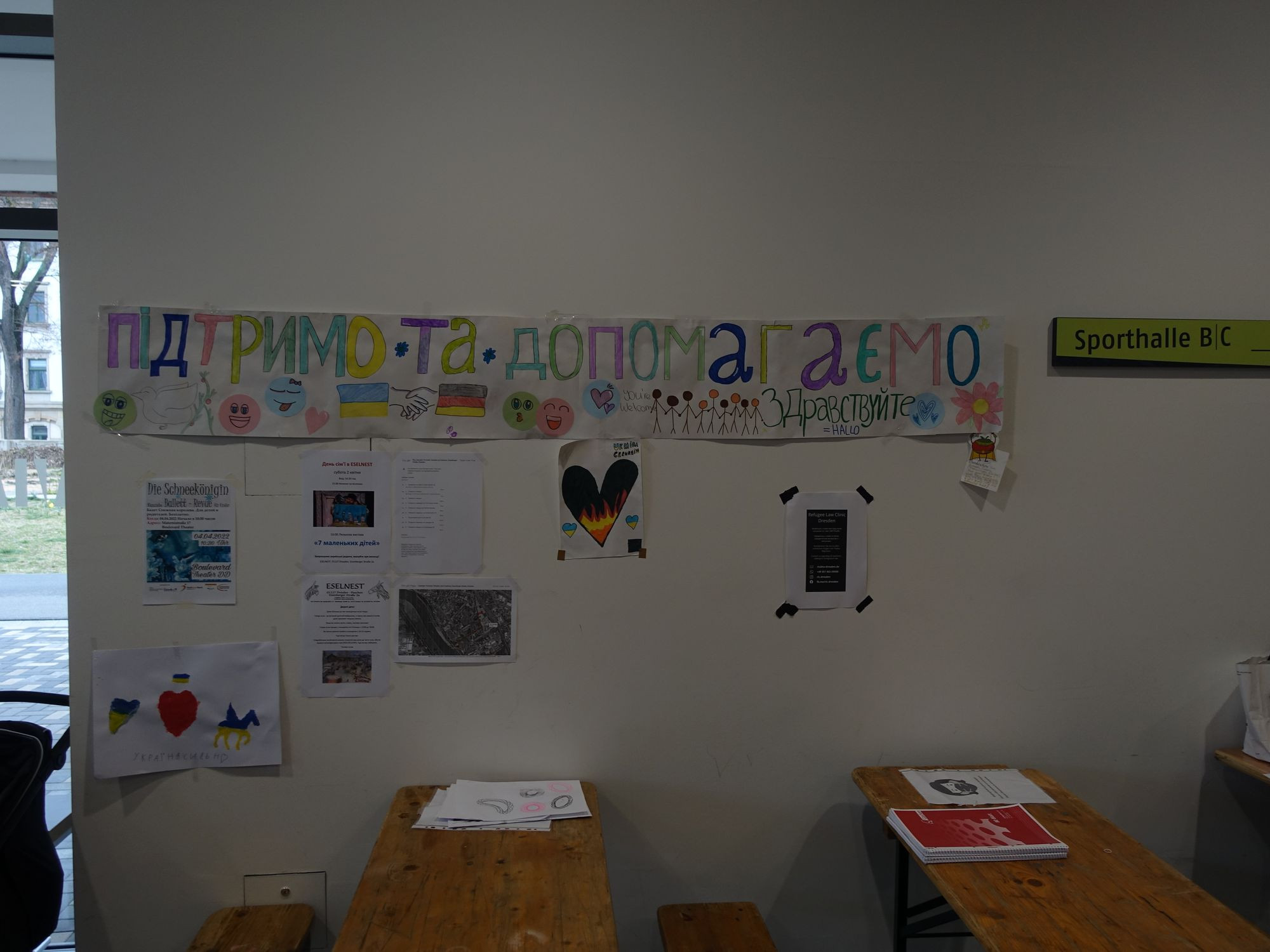Schubert lobt die Kontakte zu den Schülerinnen und Schülern und dem Leitungsteam der 145. Oberschule. Schon am 14. März hat es hier die erste Spendenaktion gegeben, in der vergangenen Woche wurde ein Spendenlauf organisiert. Auch aus der Nachbarschaft kämen viele Unterstützungsangebote. So können die Kinder im nahegelegenen Eselnest spielen gehen, Brot im Erdofen backen oder Töpfern. Am Freitag will der Chor Singasylum ein Konzert in der Sporthalle geben – und zum Mitsingen animieren. Bei Dolmetschern würde man sich über weitere Unterstützung freuen, sagt Uhlmann. Immer wieder piept sein Diensttelefon. Er hat bereits als Student bei der Unterbringung von Flüchtlingen geholfen und ist mit seinen Erfahrungen gefragt. Jetzt muss er sich Gedanken darüber machen, wie er mit seinem kleinen Betreuerteam ab sofort alle Bewohner der Unterkunft namentlich erfasst.