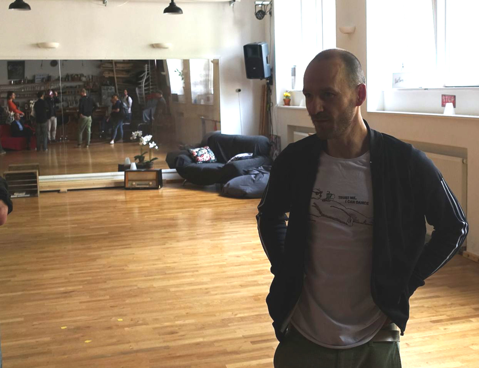 Jens Rahnfeld ist seit 2017 mit seinem Jam-Circle-Team im Savoy-Club, dem Tanzstudio im Zentralwerk, zu Hause. Auch er konnte von der Kreativraumförderung profitieren. Statt kniefeindlichem Beton gibt es jetzt einen leicht federnden Holzfußboden für die Tänzerinnen und Tänzer, für die Kontrolle der Tanzbewegungen eine Spiegelwand. „Das hätte ich mit eigenen Mitteln nicht stemmen können“, sagte Jens Rahnfeld. Um die Umsatzeinbußen während der Coronazeit zu kompensieren, habe er sich Technik zum T-Shirt-Bedrucken angeschafft. Jetzt hoffe er aber auf eine schnelle Wiederbelebung der Tanzkurse und träumt davon, in der nächsten Zeit auch wieder international besetzte Tanzworkshops durchführen zu können. Der Ballsaal des Zentralwerks sei dafür bestens geeignet. „Das kommt wieder“, zeigte er sich zuversichtlich.