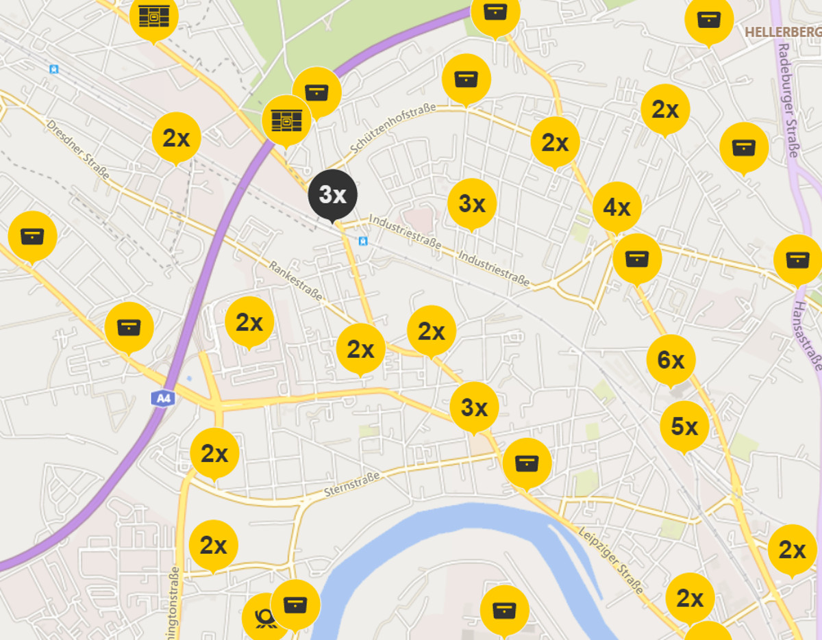 Stadtweit biete die Post aktuell in 64 Partner-Filialen Postdienstleistungen an. In dieser Zahl seien auch die drei Standorte von Postbank-Finanzcentern in der Königsbrücker Straße 21-29, am Antonsplatz 1 und in der Hofmannstraße 6-8 enthalten. Hinzu kämen im Stadtgebiet weitere 70 DHL Paketshops und Verkaufspunkte für Brief- und Paketmarken und 71 DHL Packstationen, an denen Pakete rund um die Uhr verschickt und in Empfang genommen werden können. Bereits seit 2011 betreibe die Deutsche Post keine Filialen mehr mit eigenem Personal, sondern arbeitet seitdem ausschließlich mit dem Modell der Partner-Filialen. Im kommenden Jahr soll das Packstationsnetz nochmals deutlich erweitert werden. Mehr als 80 weitere Automaten seien geplant. Hinzu kommen aktuell über 400 Briefkästen im Dresdner Stadtgebiet.