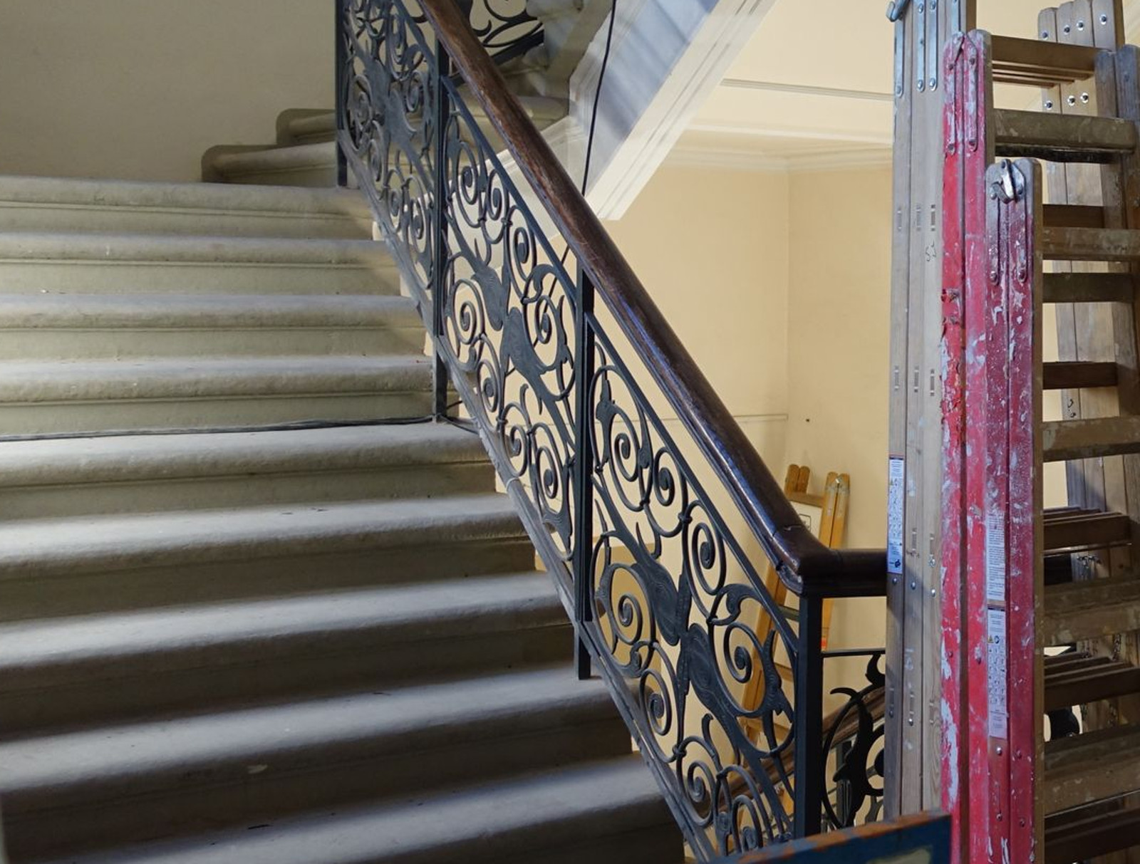 Ein Teil der abgehängten Decken wurde entfernt und durch Akustikdecken ersetzt, damit es in den Räumen nicht mehr schallt. Auch der Denkmalschutz stellte die Planung vor Herausforderungen, erläuterte Projektleiter Oliver Schyra vom städtischen Amt für Hochbau und Immobilienverwaltung. Die historischen Holzdecken und Türen oder die Stuckkanten an den Decken sollten keinen Schaden nehmen.