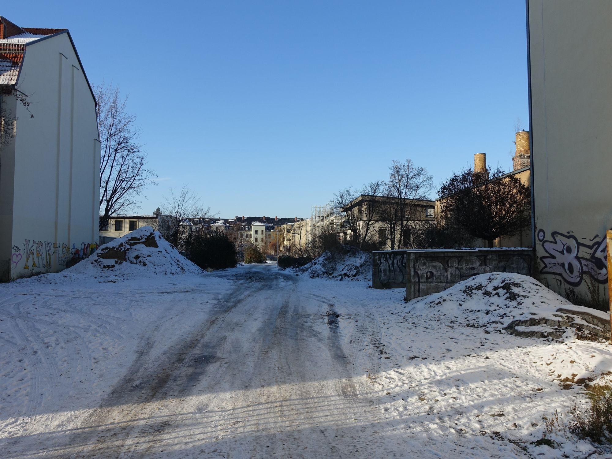 Bei der Energieversorgung haben sich die Bauherren gegen Fernwärme der SachsenEnergie entschieden. Statt dessen sind eine Erdgas-Wärmepumpe und zusätzlich Luft-Wasser-Wärmepumpen geplant. Für die Freiflächen im Hinterhof haben die Architekten eine Grünanlage mit Boulebahn, Spielplatz und Sitzgelegenheiten vorgesehen. Im Frühjahr 2025 sollen die Wohnungen bezugsfertig sein.