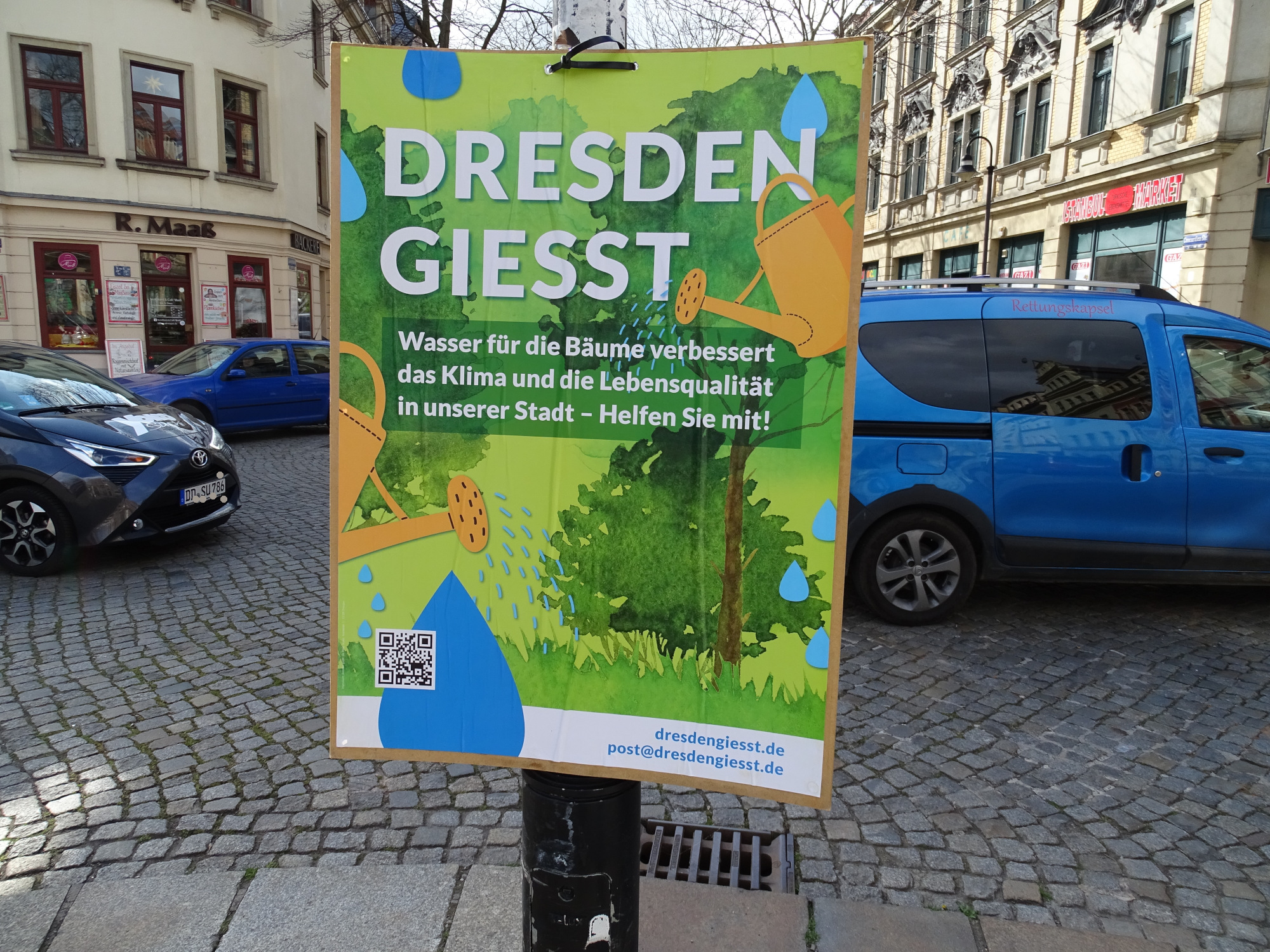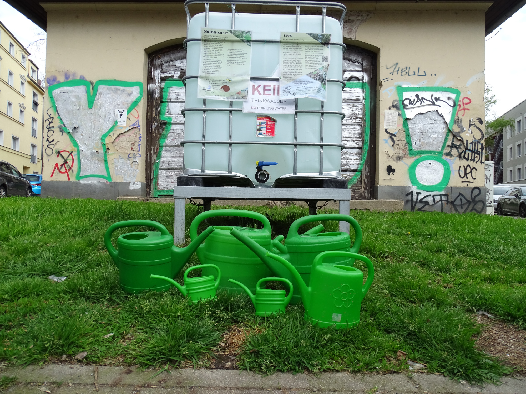 Gut wäre es, wenn auch auf anderen Plätzen (z. B. Leisniger Platz) so ein Wassertank aufgestellt wird. Schließlich gibt es in vielen Straßen Bäume zu gießen.