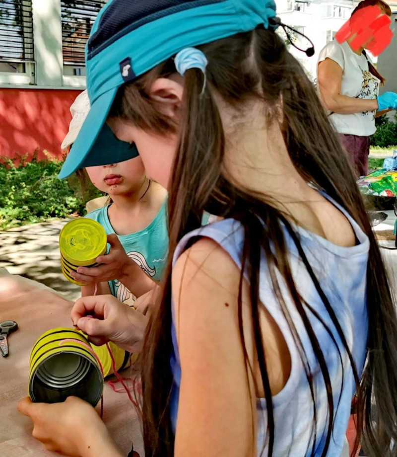 Kinder samt Eltern und Verwandten strömten auf das Grundstück, wo die Teams von Schule und Hort schon einige Überraschungen vorbereitet hatten. Nach einer musikalischen Eröffnung der Musikschulkinder und vielerlei Stände zum Schlemmen und Naschen gab es vor dem Leitgedanken der Nachhaltigkeit zahlreiche Kreativangebote mit Materialien, die sonst gerne im Müll landen.