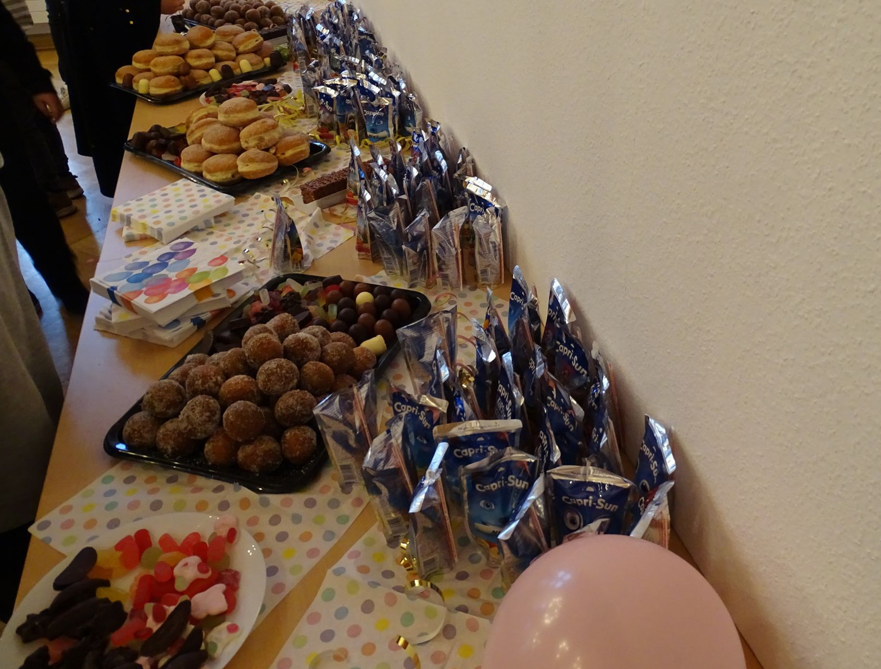 Im Bürgersaal warteten nicht nur Pfannkuchen, Saft und andere Leckereien auf die Kinder, sondern auch ein lustiges Programm mit Meister Klecks und Spaßimir. Dahinter verbergen sich Frank Walther und Sohn Mark, die 1985 das erste Mal gemeinsam auf der Bühne standen und seit 1998 ihr Hobby zum Beruf gemacht haben – mit Programmen für Kinder, Erwachsene und Event-Moderationen. Schnell hatten die beiden die Kinder in ihren Bann gezogen und mit Liedern und Tänzen zum Mitmachen begeistert.