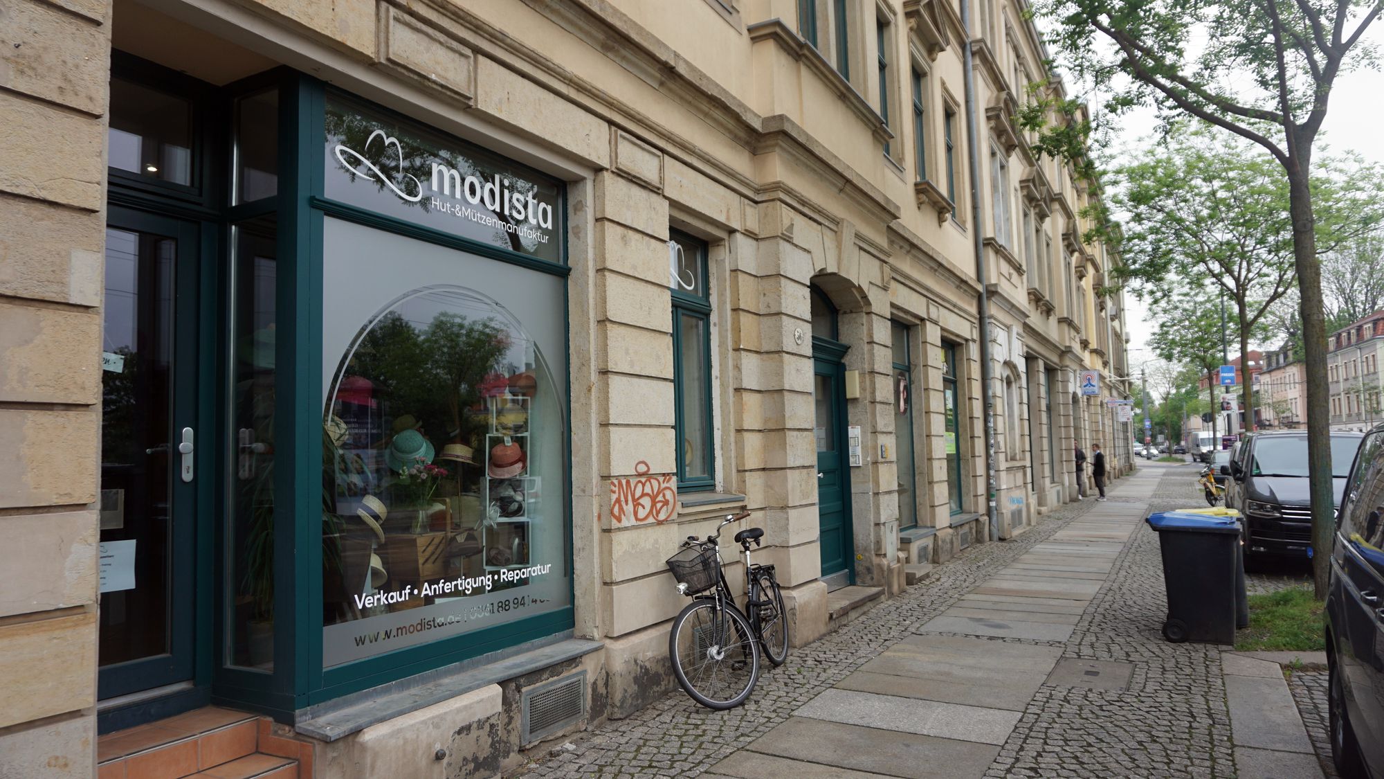Draußen rattern die Straßenbahnen, drinnen die Nähmaschine, getrennt sind sie durch ein Schaufenster. Es gehört zur Modista Hut- und Mützenmanufaktur, die diesen März von Bühlau nach Pieschen auf die Leipziger Straße umgezogen ist. Hier, im Reich des Handwerks, werden Kopfbedeckungen aller Art verkauft, ersonnen und repariert.