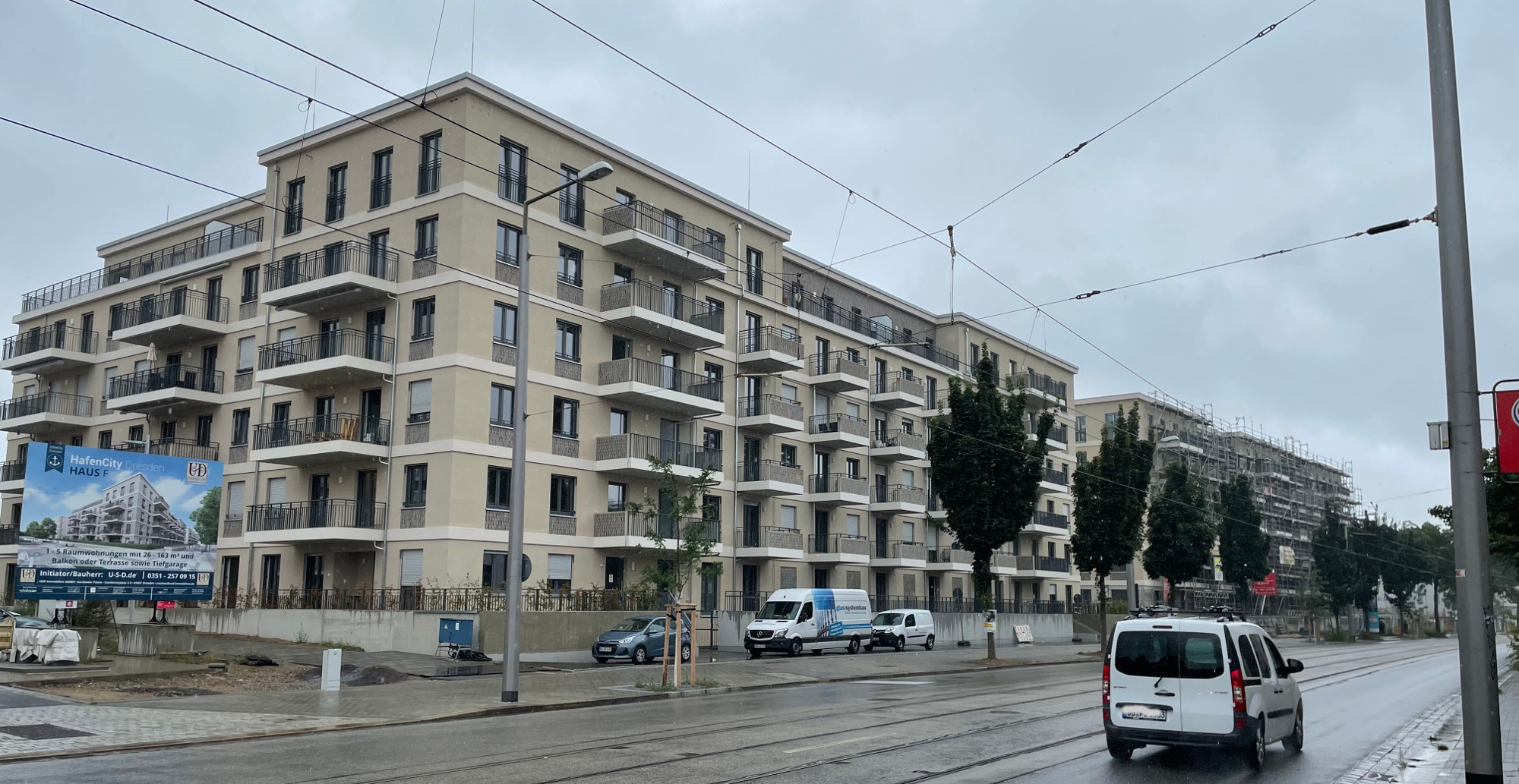 In der Dresdner Hafencity sind die ersten von künftig rund 350 Wohnungen bereits bezogen. Im Haus G mit den Nummern