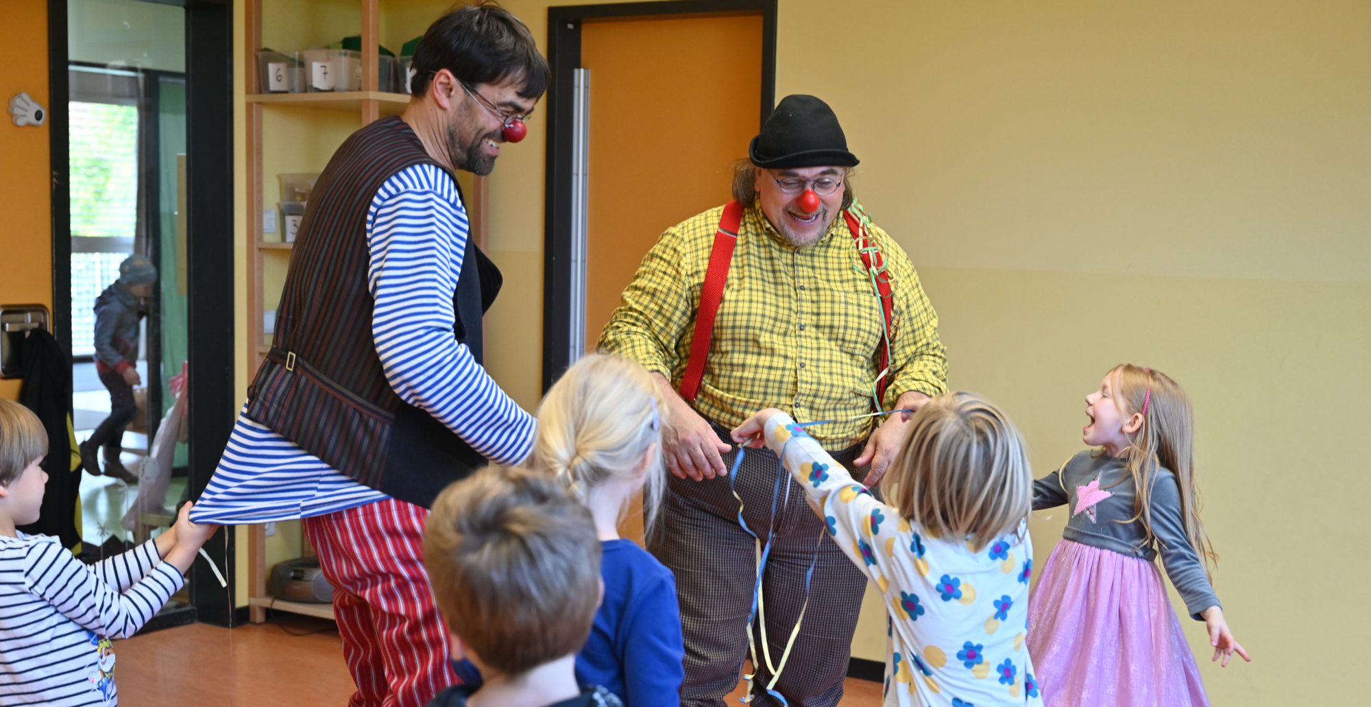 Ausgelassene Stimmung herrschte heute Vormittag bei den Kindern der Kindertagesstätte Concordia in der Konkordienstraße. Zwei Clowns waren zu Besuch und