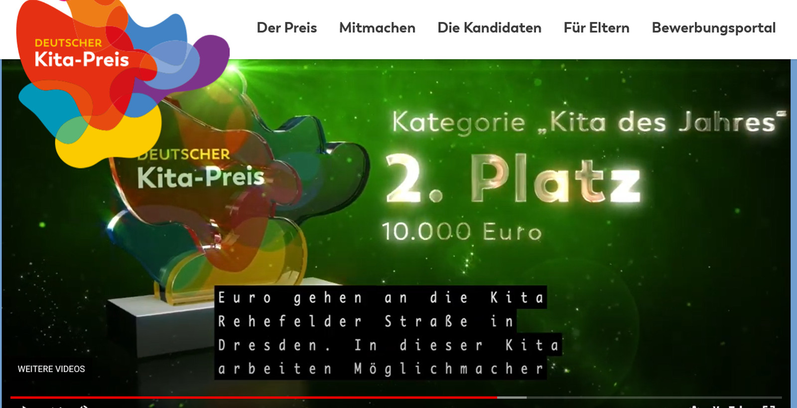 Großer Bahnhof am vergangenen Mittwoch in der Kita Rehefelder Straße. Nach der Preisverkündung auf der digitalen Award-Show im Juni folgte