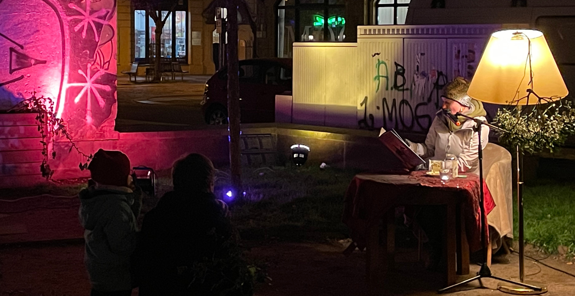 Im Dezember 2024 soll der Konkordienplatz in Pieschen wieder zur Bühne für abendliche Lesungen werden. Vom 1. bis 24. Dezember