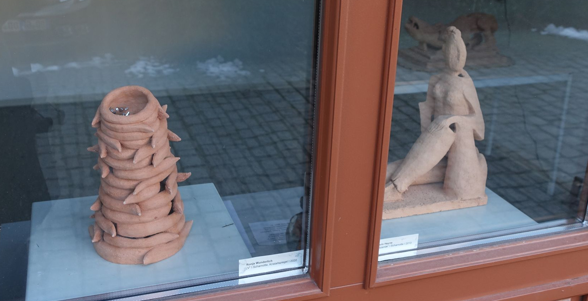 Zum Internationalen Frauentag lud die Kreative Werkstatt zur Finissage der Fensterausstellung „Schamotte“ ein. Einige Interessierte nahmen diese Möglichkeit wahr, um