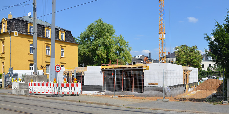 Der erste Bauabschnitt des Mika-Quartiers in Mickten nimmt Gestalt an. Der Bau der Häuser A und B liege zwei bis